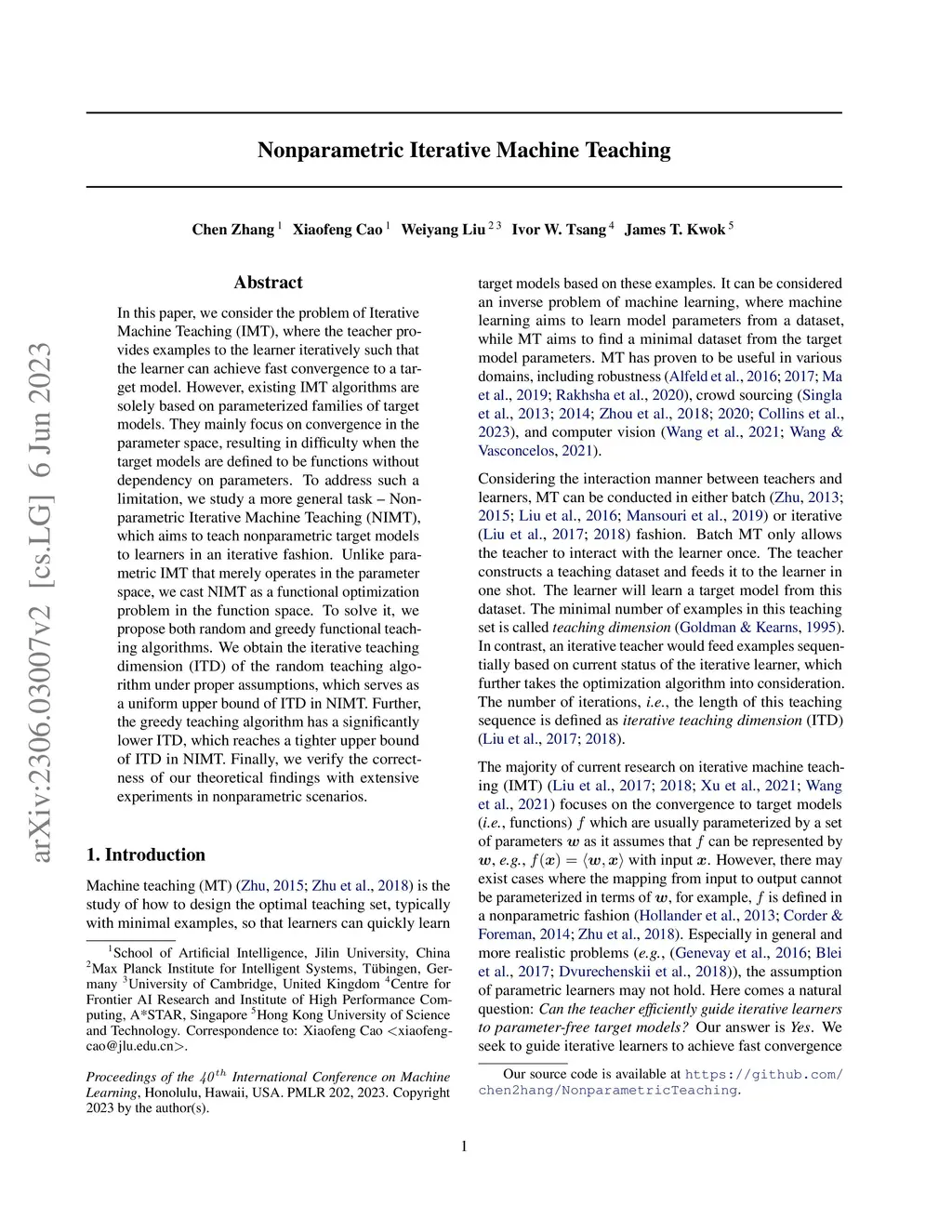 Nonparametric Iterative Machine Teaching