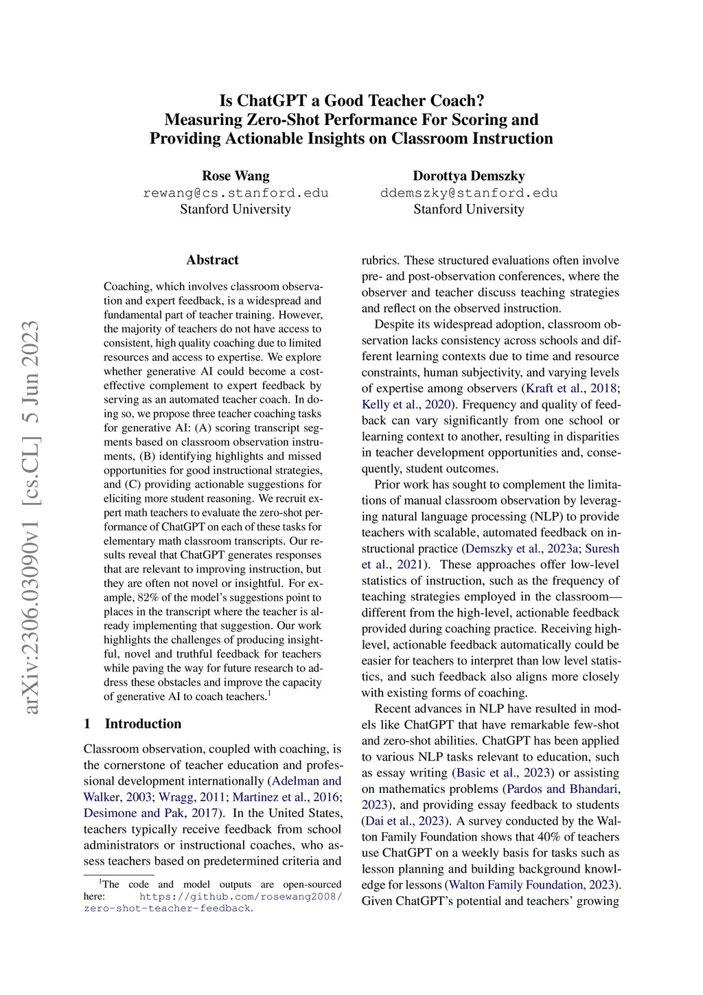 Is ChatGPT a Good Teacher Coach? Measuring Zero-Shot Performance For
