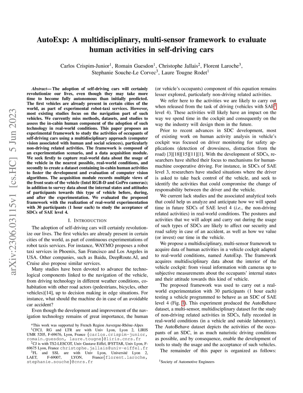 AutoExp: A multidisciplinary, multi-sensor framework to evaluate human