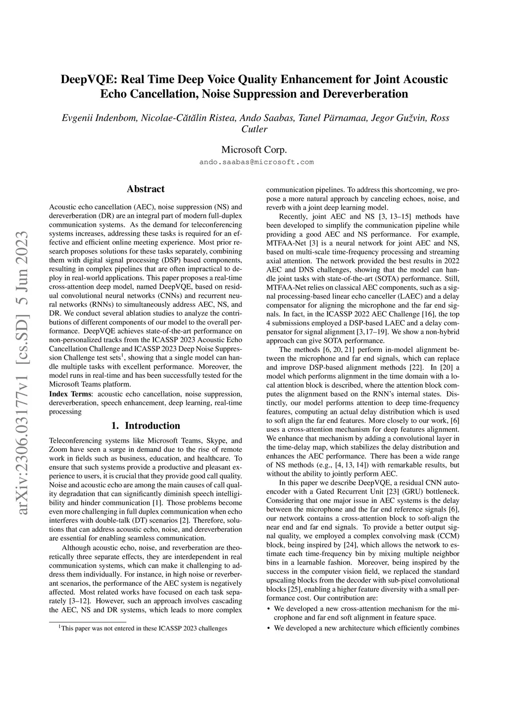 DeepVQE: Real Time Deep Voice Quality Enhancement for Joint Acoustic