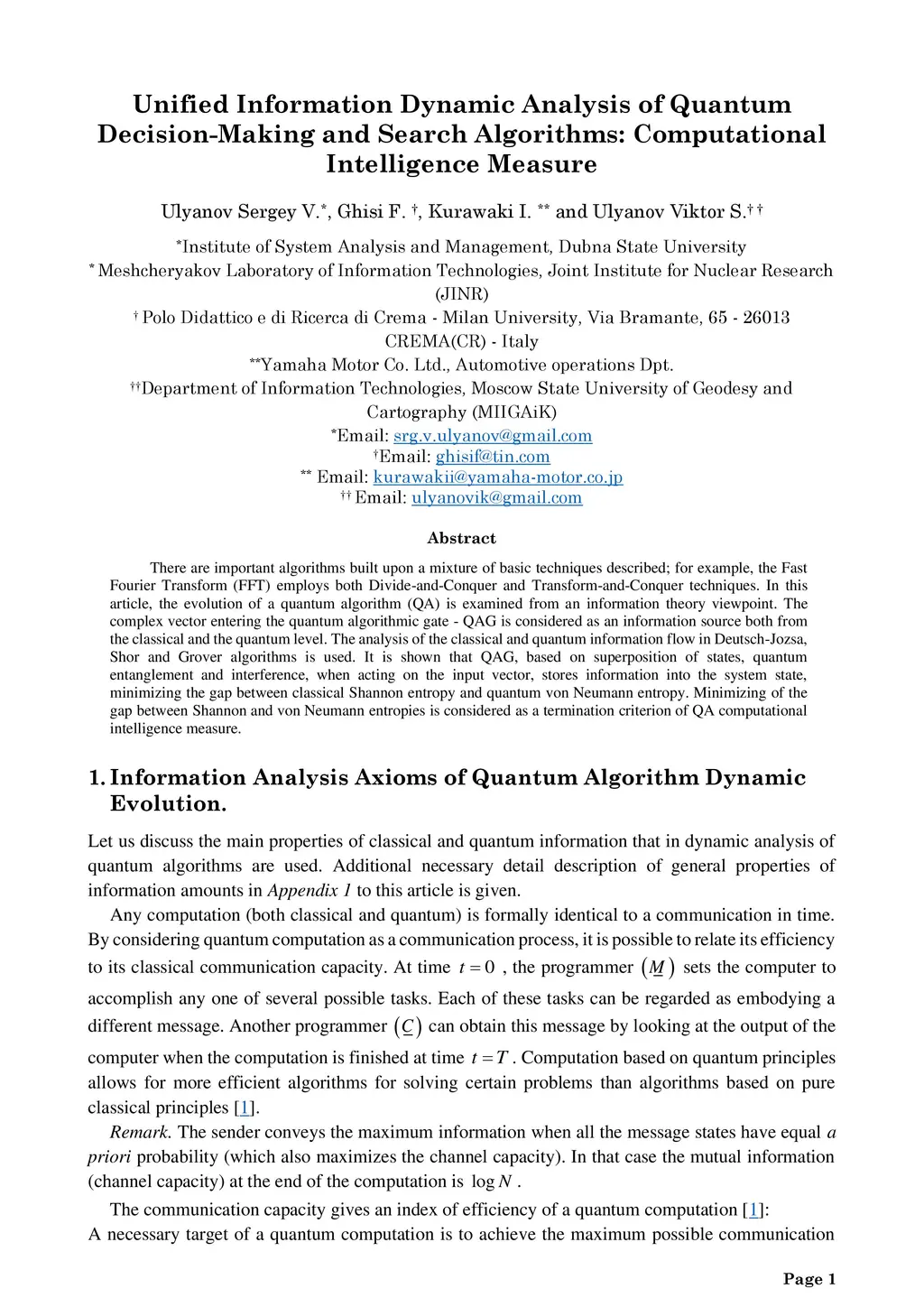Unified Information Dynamic Analysis of Quantum Decision-Making and