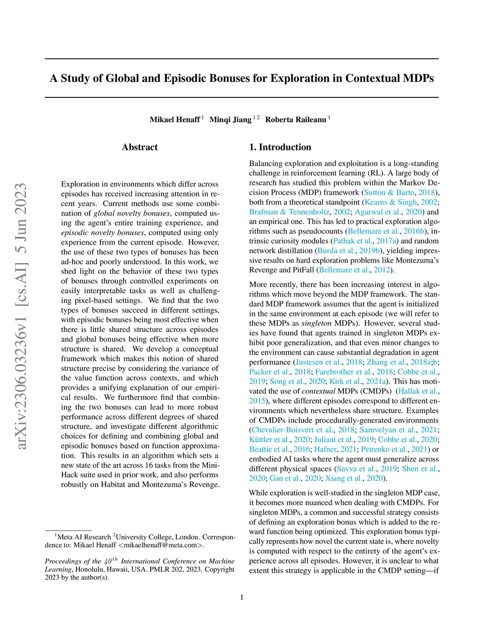 A Study of Global and Episodic Bonuses for Exploration in Contextual