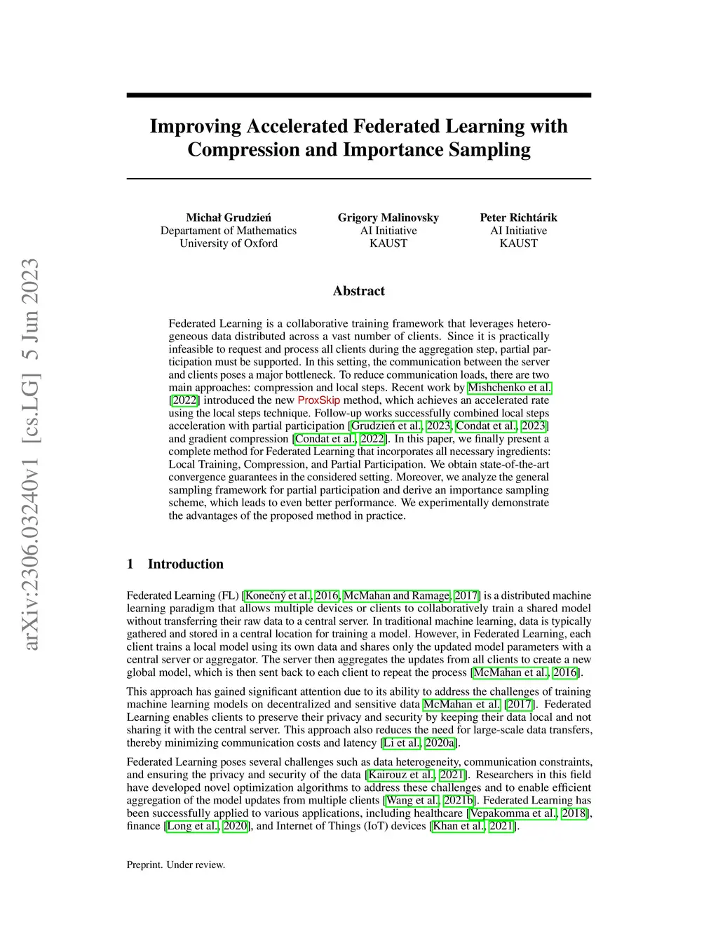 Federated Learning is a collaborative training framework that leverages heterogeneous data distributed across a vast number of clients. Since it is practically infeasible to request and process all clients during the aggregation step, partial participation must be supported. In this setting, the communication between the server and clients poses a major bottleneck. To reduce communication loads, there are two main approaches: compression and local steps. Recent work by Mishchenko et al. [2022] introduced the new ProxSkip method, which achieves an accelerated rate using the local steps technique. Follow-up works successfully combined local steps acceleration with partial participation [Grudzie\ñ et al., 2023, Condat et al. 2023] and gradient compression [Condat et al. [2022]. In this paper, we finally present a complete method for Federated Learning that incorporates all necessary ingredients: Local Training, Compression, and Partial Participation. We obtain state-of-the-art convergence guarantees in the considered setting. Moreover, we analyze the general sampling framework for partial participation and derive an importance sampling scheme, which leads to even better performance. We experimentally demonstrate the advantages of the proposed method in practice.
