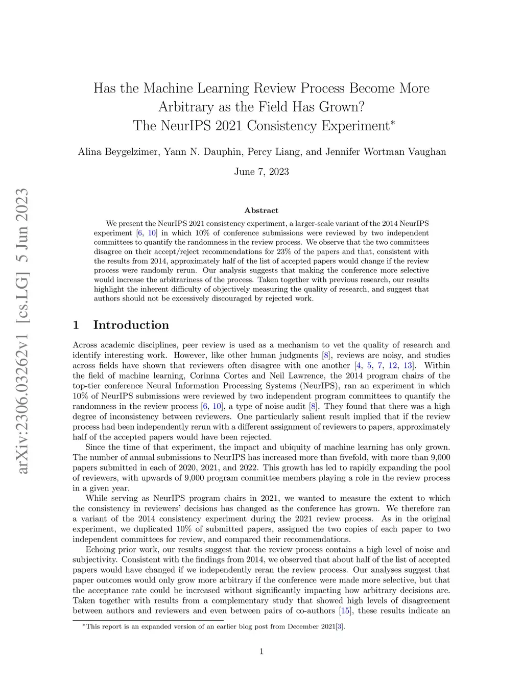 Has the Machine Learning Review Process Become More Arbitrary as the