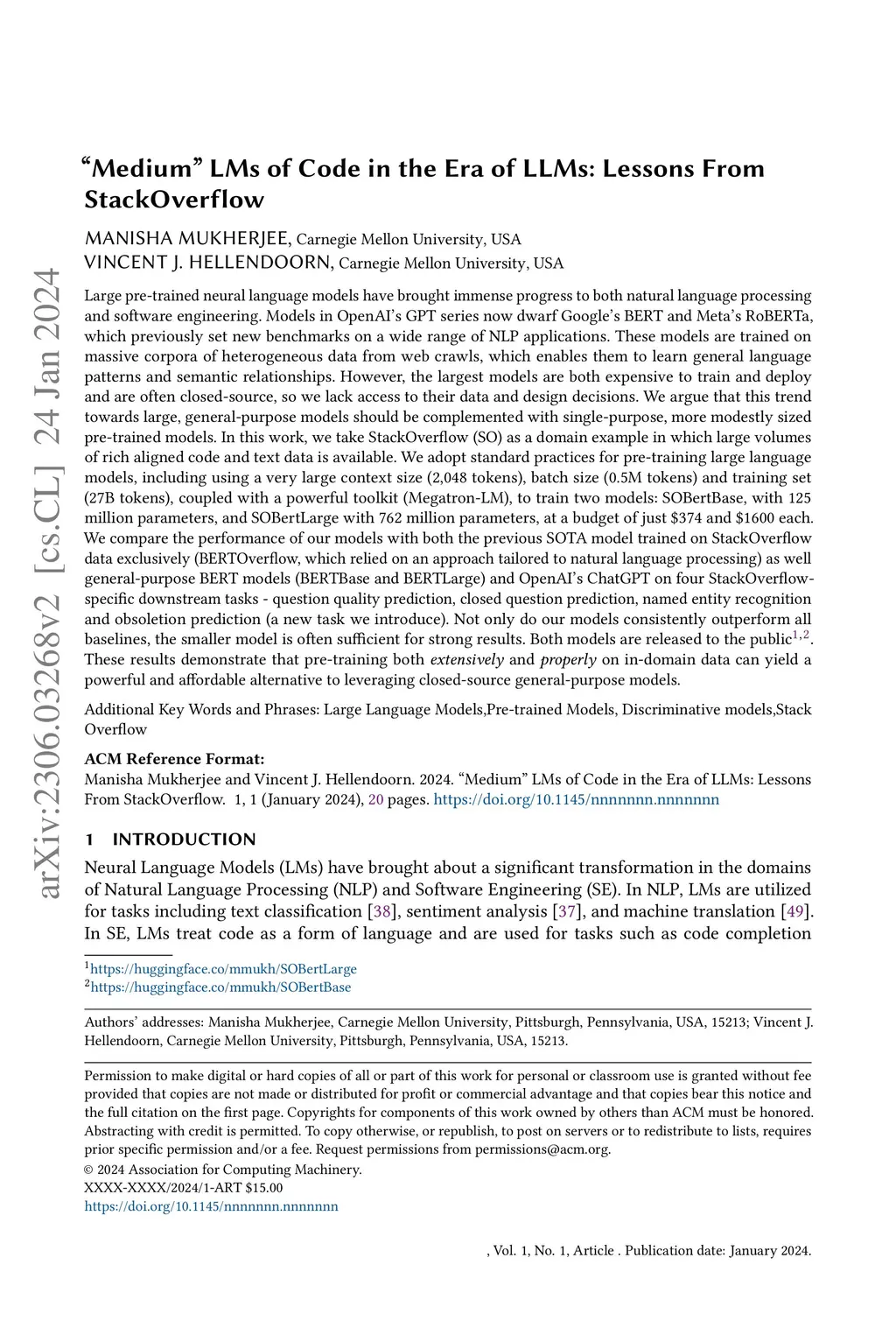 Recent advancements in AI have sparked a trend in constructing large, generalist language models that handle a multitude of tasks, including many code-related ones. While these models are expensive to train and are often closed-source, they have enjoyed broad adoption because they tend to outperform smaller, domain-specific models of code. In this work, we argue that this is not a foregone conclusion. We show that modestly sized domain-specific models can outperform much larger ones on code labeling tasks, provided they are trained to the same standards. Concretely, we focus on StackOverflow (SO), which offers large volumes of aligned code and text data. We align established best-practices for pre-training large language models with properties of SO as a data source, especially using a large context window (2,048 tokens), coupled with a powerful toolkit (Megatron-LM) to train two models: SOBertBase (125M parameters) and SOBertLarge (762M parameters), at a budget of just $374 and $1600 each. We compare the performance of our models with a prior domain-specific model which did not adopt many of these practices (BERTOverflow), as well two general-purpose BERT models and two models in OpenAI's GPT series (GPT-3.5 and GPT-4). We study four labeling tasks: question quality prediction, closed question prediction, NER and obsoletion prediction. The final task is a new benchmark we introduce, on which we additionally compare SOBert with a fine-tuned CodeLlama and StackLlama (models with 10x more parameters than SOBertLarge). Our models consistently outperform all baselines. In contrast, BertOverflow is outperformed by generalist models in most tasks. These results demonstrate that pre-training both extensively and properly on in-domain data can yield a powerful and affordable alternative to leveraging closed-source general-purpose models. Both models are released to the public on Hugging Face.