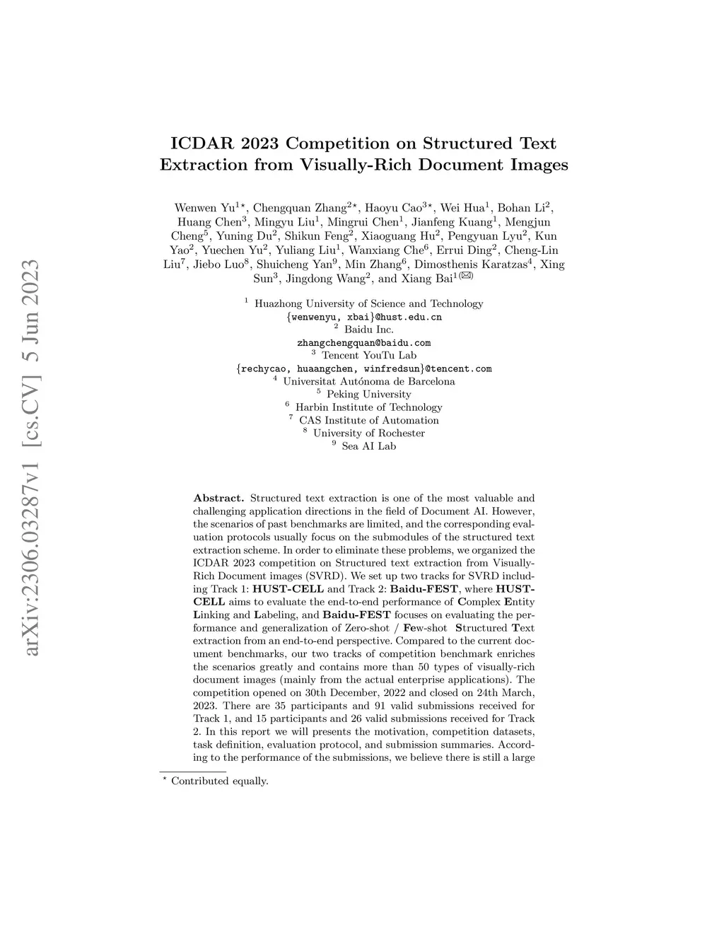 ICDAR 2023 Competition on Structured Text Extraction from Visually-Rich