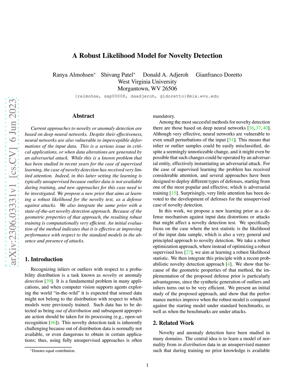 A Robust Likelihood Model for Novelty Detection