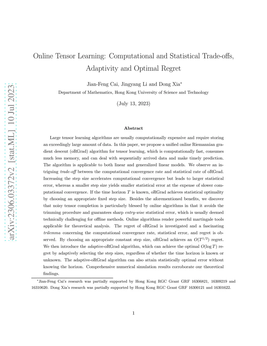 Online Tensor Learning: Computational and Statistical Trade-offs,
