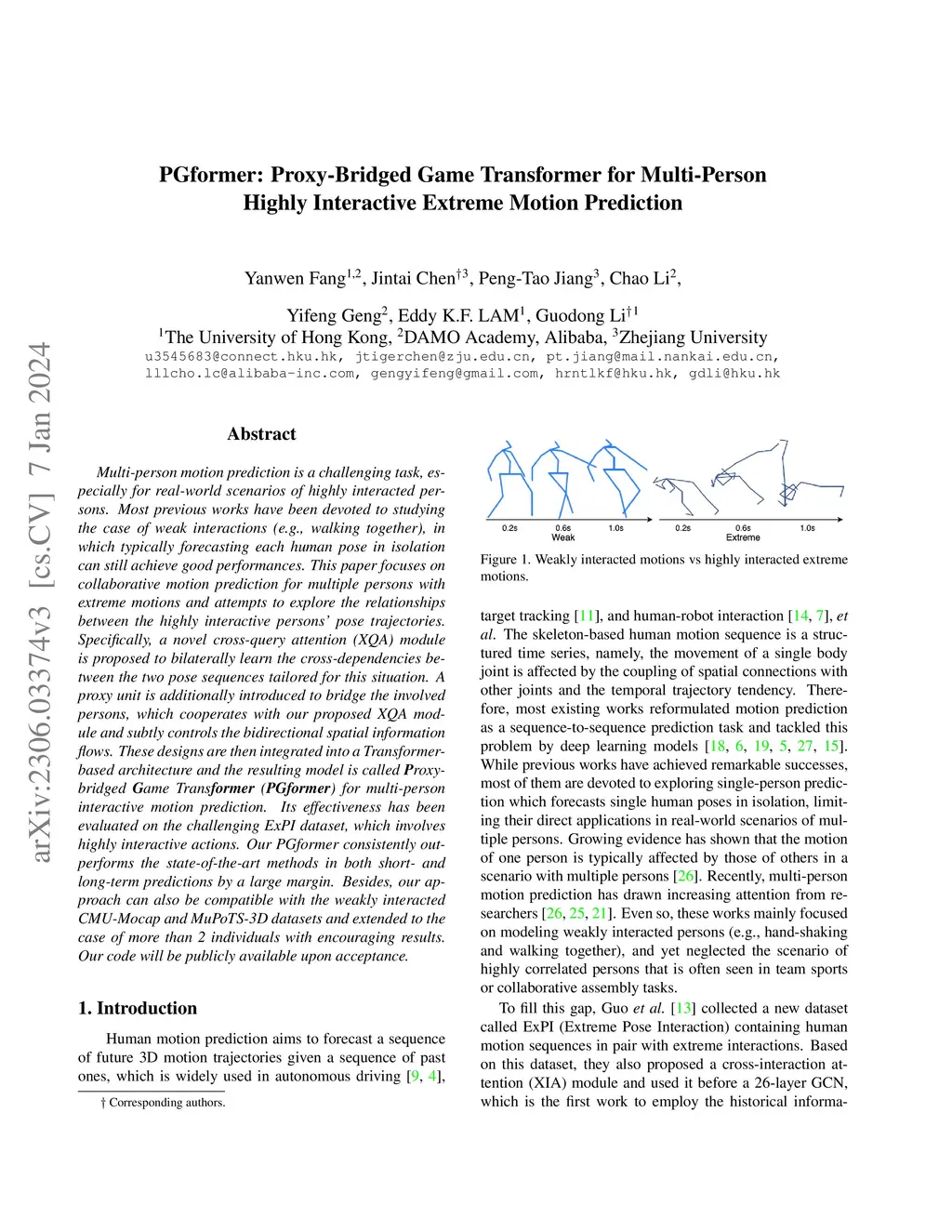 Multi-person motion prediction is a challenging task, especially for real-world scenarios of highly interacted persons. Most previous works have been devoted to studying the case of weak interactions (e.g., walking together), in which typically forecasting each human pose in isolation can still achieve good performances. This paper focuses on collaborative motion prediction for multiple persons with extreme motions and attempts to explore the relationships between the highly interactive persons' pose trajectories. Specifically, a novel cross-query attention (XQA) module is proposed to bilaterally learn the cross-dependencies between the two pose sequences tailored for this situation. A proxy unit is additionally introduced to bridge the involved persons, which cooperates with our proposed XQA module and subtly controls the bidirectional spatial information flows. These designs are then integrated into a Transformer-based architecture and the resulting model is called Proxy-bridged Game Transformer (PGformer) for multi-person interactive motion prediction. Its effectiveness has been evaluated on the challenging ExPI dataset, which involves highly interactive actions. Our PGformer consistently outperforms the state-of-the-art methods in both short- and long-term predictions by a large margin. Besides, our approach can also be compatible with the weakly interacted CMU-Mocap and MuPoTS-3D datasets and extended to the case of more than 2 individuals with encouraging results.