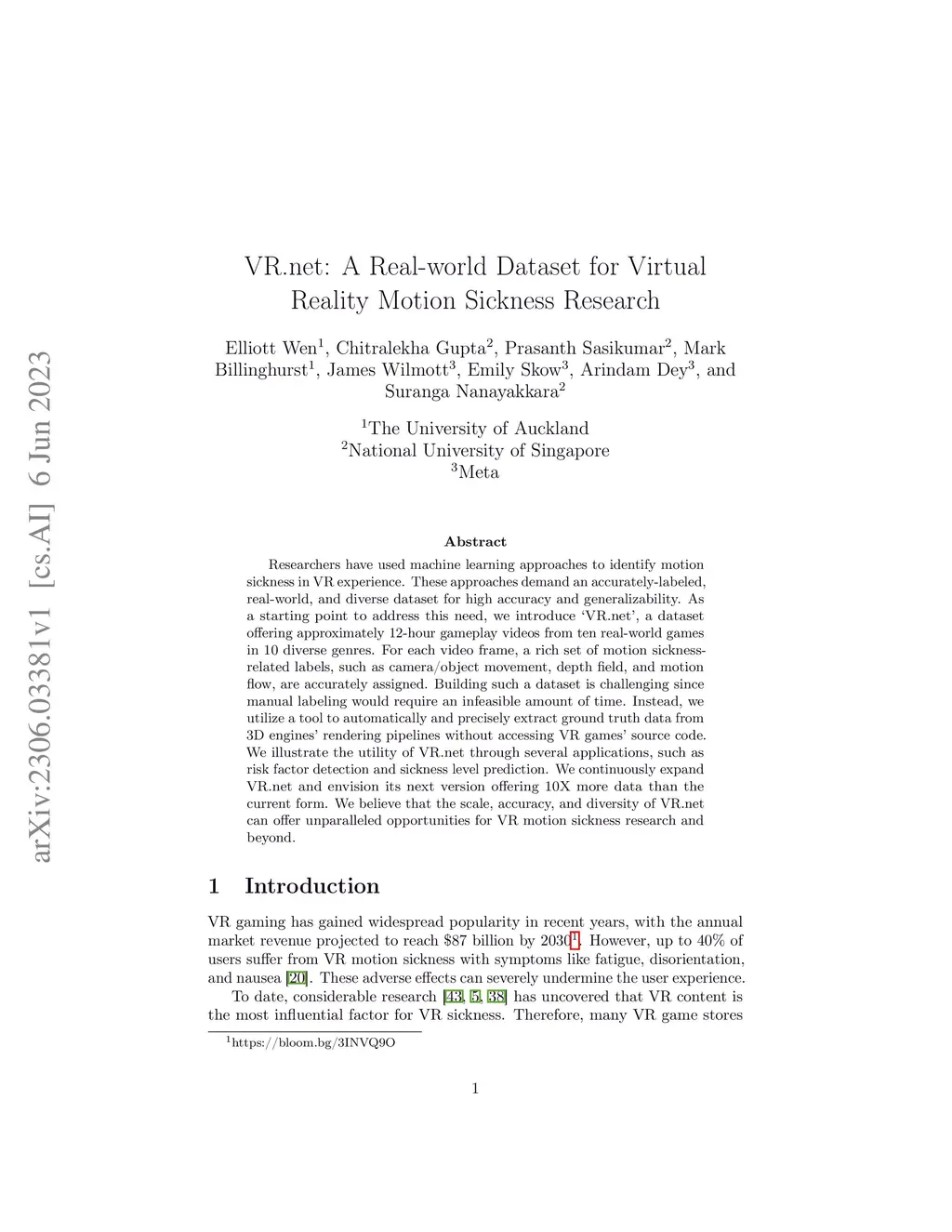 VR.net: A Real-world Dataset for Virtual Reality Motion Sickness