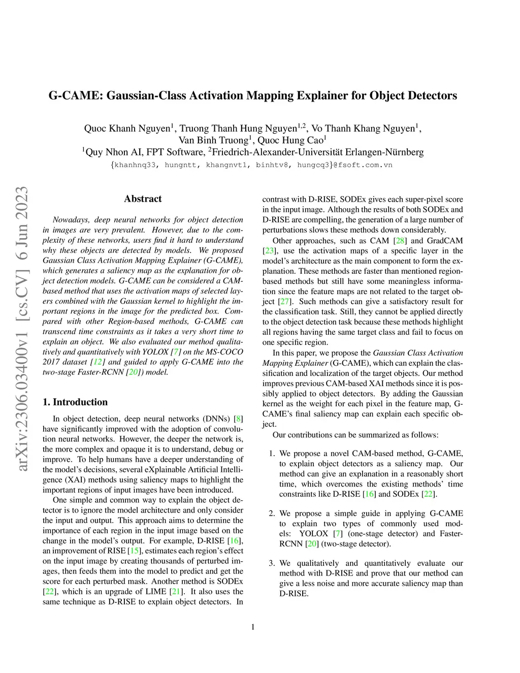 G-CAME: Gaussian-Class Activation Mapping Explainer for Object Detectors
