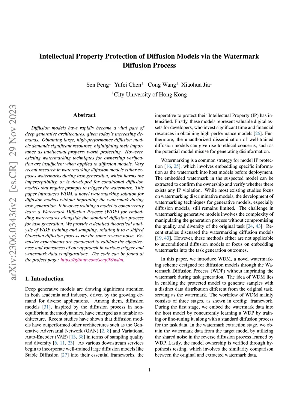 Intellectual Property Protection of Diffusion Models via the Watermark