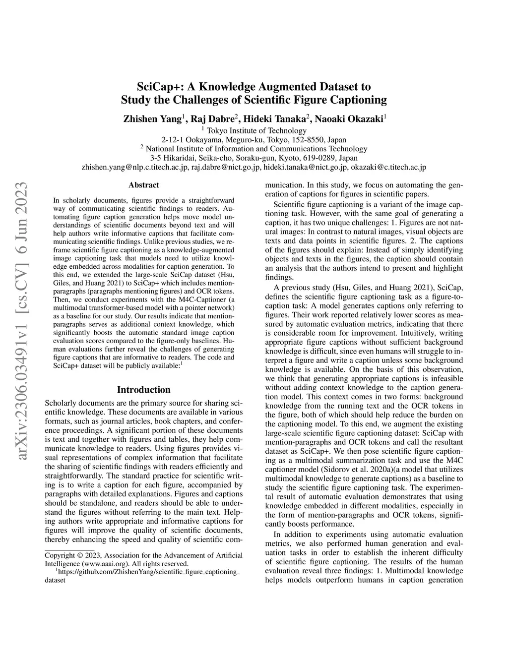 SciCap+: A Knowledge Augmented Dataset to Study the Challenges of