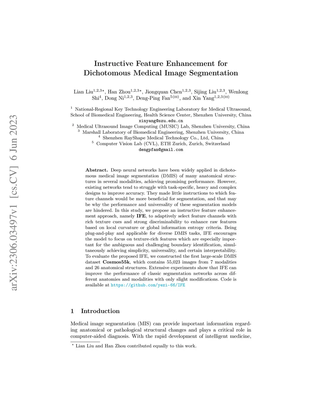 Instructive Feature Enhancement for Dichotomous Medical Image