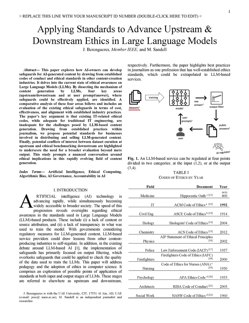 This paper explores how AI-owners can develop safeguards for AI-generated content by drawing from established codes of conduct and ethical standards in other content-creation industries. It delves into the current state of ethical awareness on Large Language Models (LLMs). By dissecting the mechanism of content generation by LLMs, four key areas (upstream/downstream and at user prompt/answer), where safeguards could be effectively applied, are identified. A comparative analysis of these four areas follows and includes an evaluation of the existing ethical safeguards in terms of cost, effectiveness, and alignment with established industry practices. The paper's key argument is that existing IT-related ethical codes, while adequate for traditional IT engineering, are inadequate for the challenges posed by LLM-based content generation. Drawing from established practices within journalism, we propose potential standards for businesses involved in distributing and selling LLM-generated content. Finally, potential conflicts of interest between dataset curation at upstream and ethical benchmarking downstream are highlighted to underscore the need for a broader evaluation beyond mere output. This study prompts a nuanced conversation around ethical implications in this rapidly evolving field of content generation.