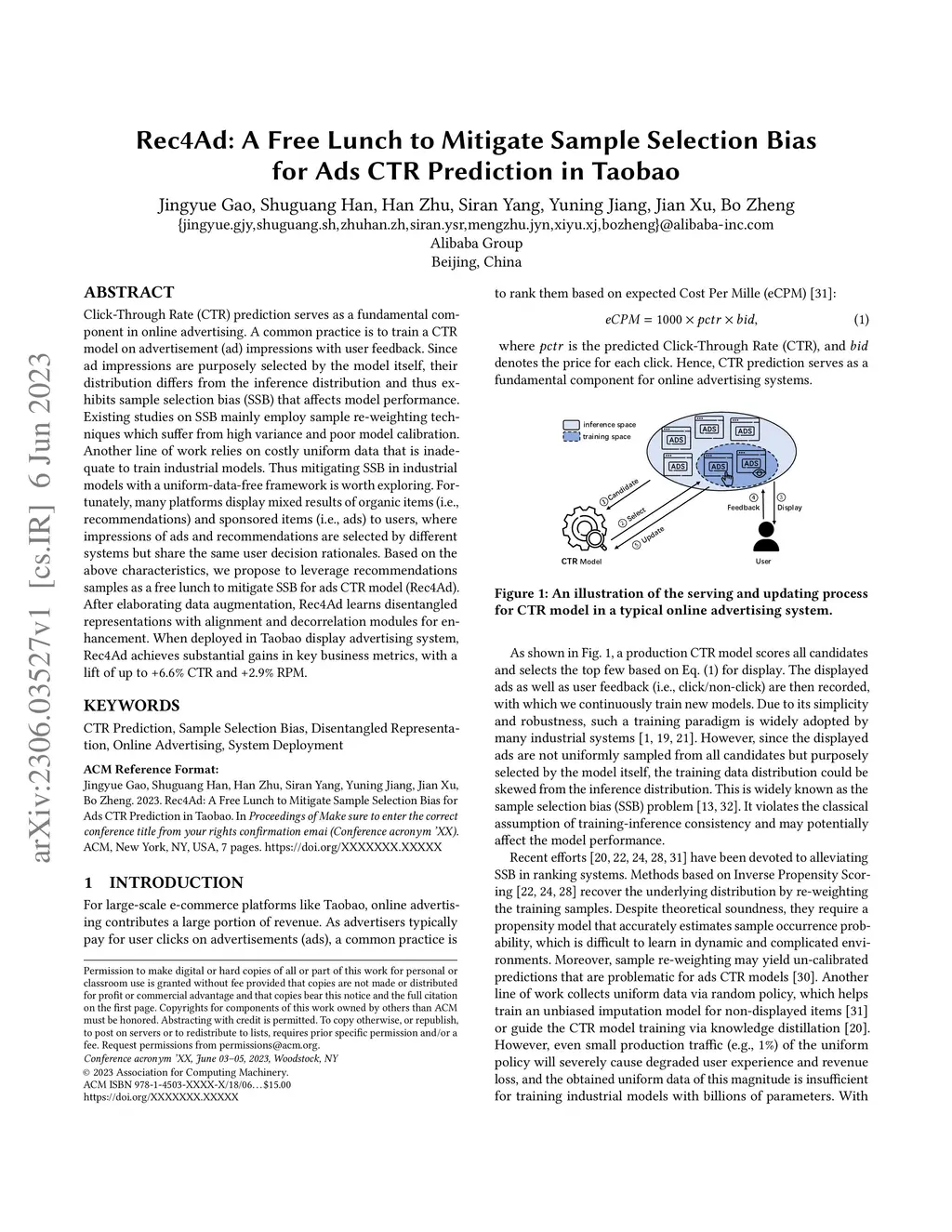 Rec4Ad: A Free Lunch to Mitigate Sample Selection Bias for Ads CTR