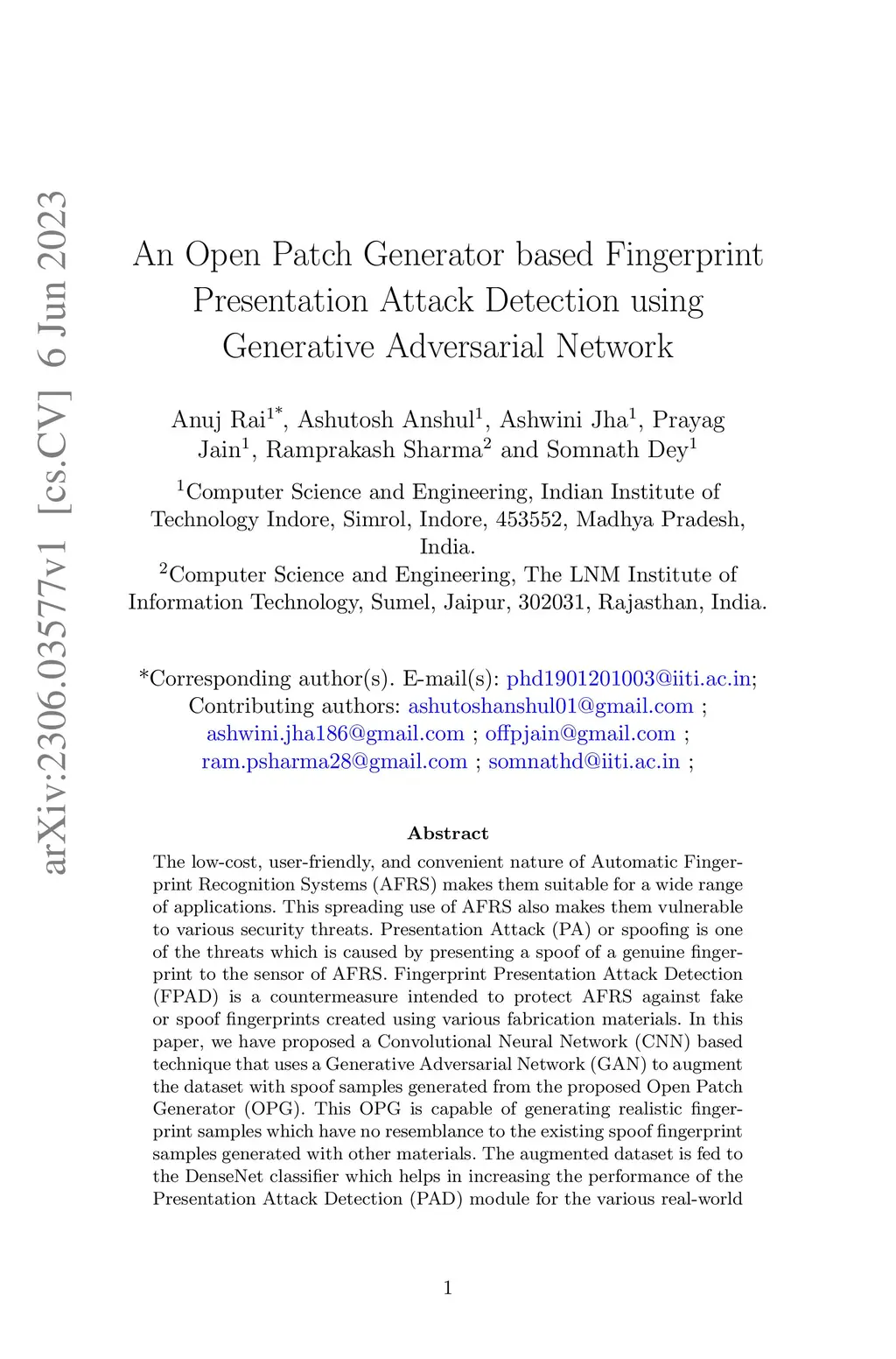 An Open Patch Generator based Fingerprint Presentation Attack Detection