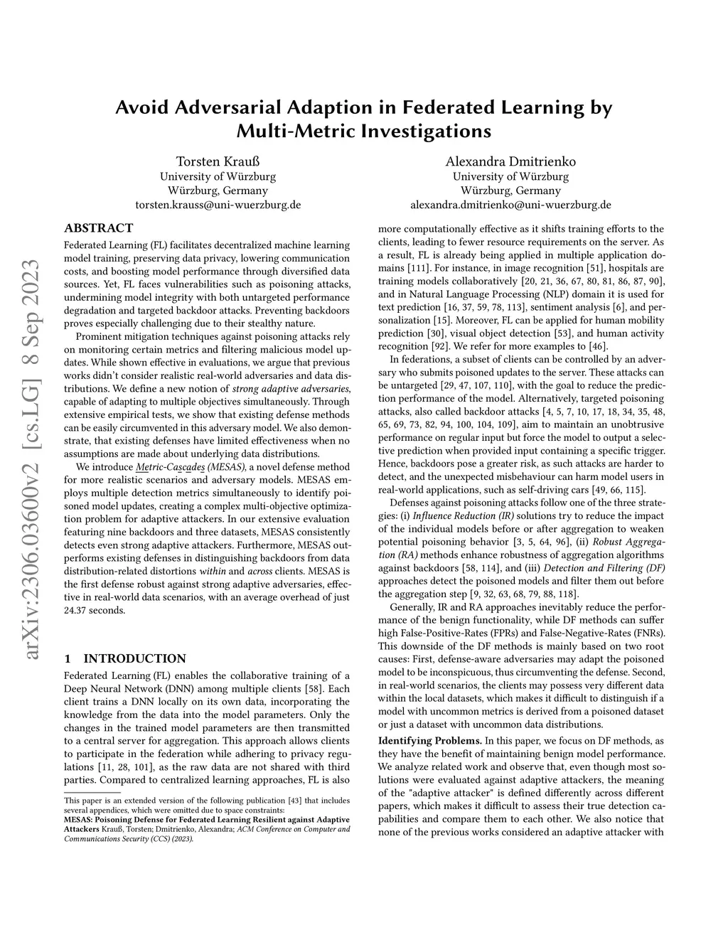 Avoid Adversarial Adaption in Federated Learning by Multi-Metric