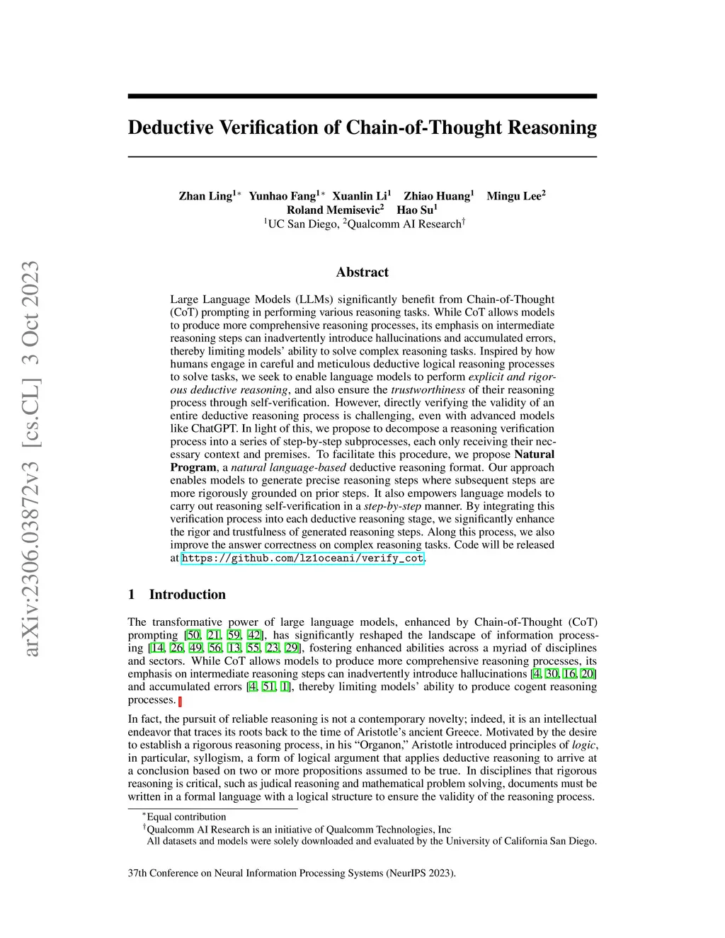 Deductive Verification of Chain-of-Thought Reasoning