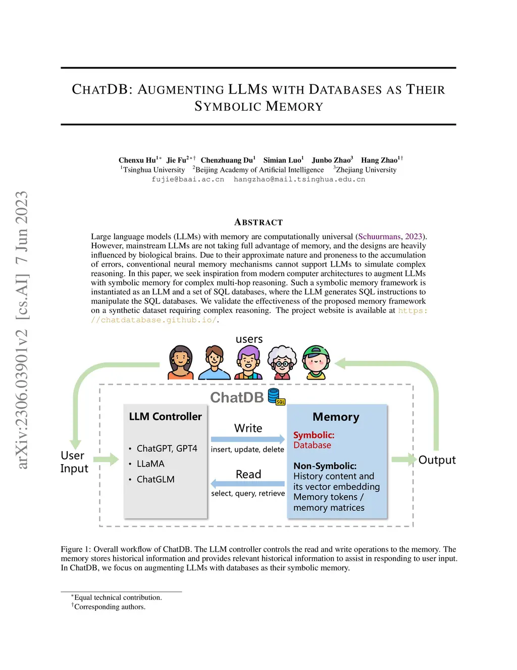 ChatDB: Augmenting LLMs with Databases as Their Symbolic Memory