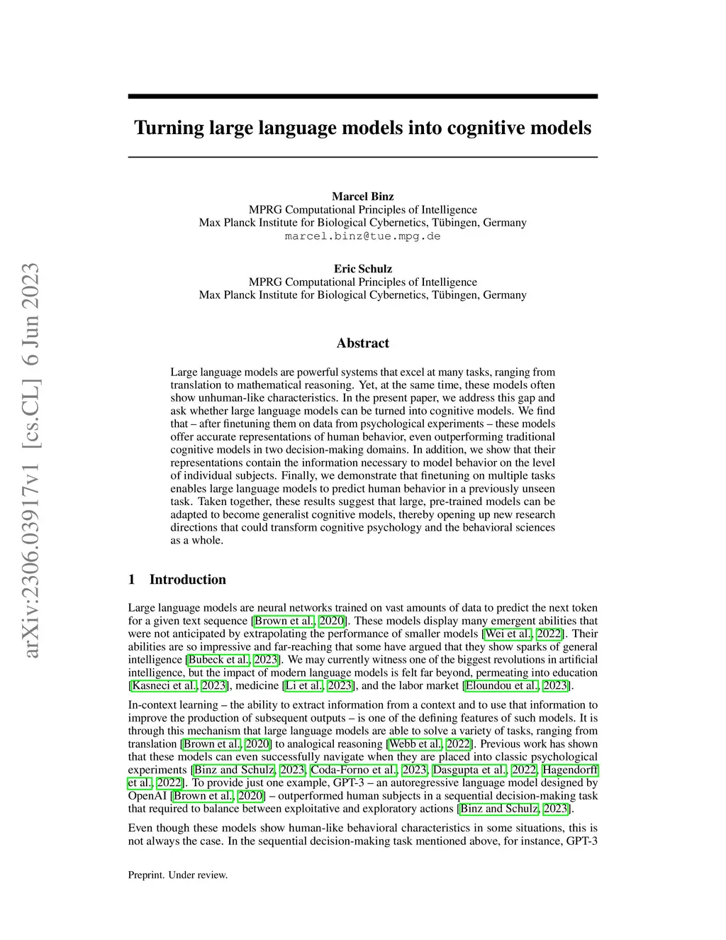 Turning large language models into cognitive models