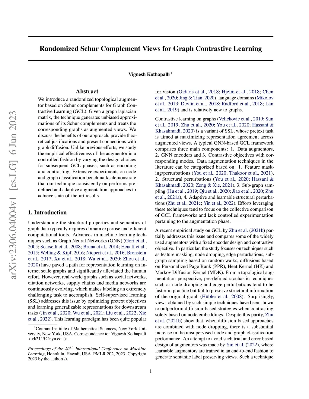 We introduce a randomized topological augmentor based on Schur complements for Graph Contrastive Learning (GCL). Given a graph laplacian matrix, the technique generates unbiased approximations of its Schur complements and treats the corresponding graphs as augmented views. We discuss the benefits of our approach, provide theoretical justifications and present connections with graph diffusion. Unlike previous efforts, we study the empirical effectiveness of the augmentor in a controlled fashion by varying the design choices for subsequent GCL phases, such as encoding and contrasting. Extensive experiments on node and graph classification benchmarks demonstrate that our technique consistently outperforms pre-defined and adaptive augmentation approaches to achieve state-of-the-art results.