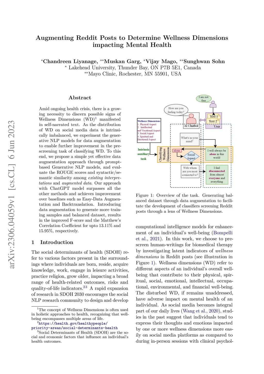 Augmenting Reddit Posts to Determine Wellness Dimensions impacting