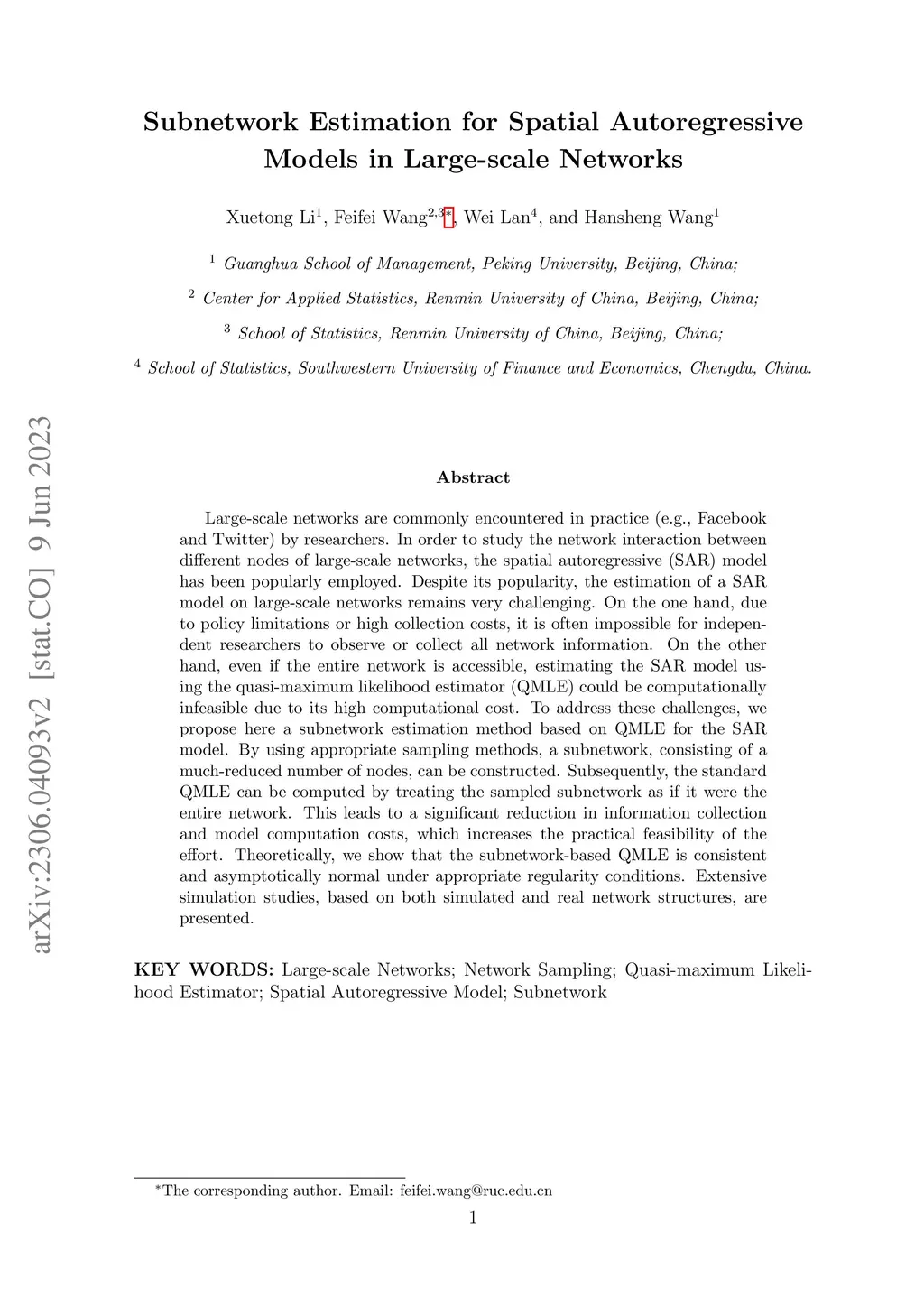 Large-scale networks are commonly encountered in practice (e.g., Facebook and Twitter) by researchers. In order to study the network interaction between different nodes of large-scale networks, the spatial autoregressive (SAR) model has been popularly employed. Despite its popularity, the estimation of a SAR model on large-scale networks remains very challenging. On the one hand, due to policy limitations or high collection costs, it is often impossible for independent researchers to observe or collect all network information. On the other hand, even if the entire network is accessible, estimating the SAR model using the quasi-maximum likelihood estimator (QMLE) could be computationally infeasible due to its high computational cost. To address these challenges, we propose here a subnetwork estimation method based on QMLE for the SAR model. By using appropriate sampling methods, a subnetwork, consisting of a much-reduced number of nodes, can be constructed. Subsequently, the standard QMLE can be computed by treating the sampled subnetwork as if it were the entire network. This leads to a significant reduction in information collection and model computation costs, which increases the practical feasibility of the effort. Theoretically, we show that the subnetwork-based QMLE is consistent and asymptotically normal under appropriate regularity conditions. Extensive simulation studies, based on both simulated and real network structures, are presented.