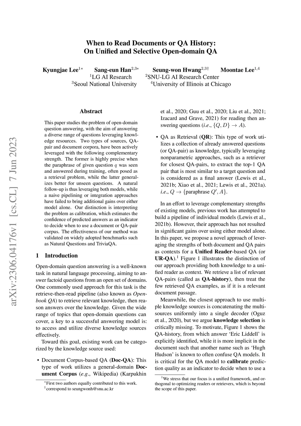 When to Read Documents or QA History: On Unified and Selective