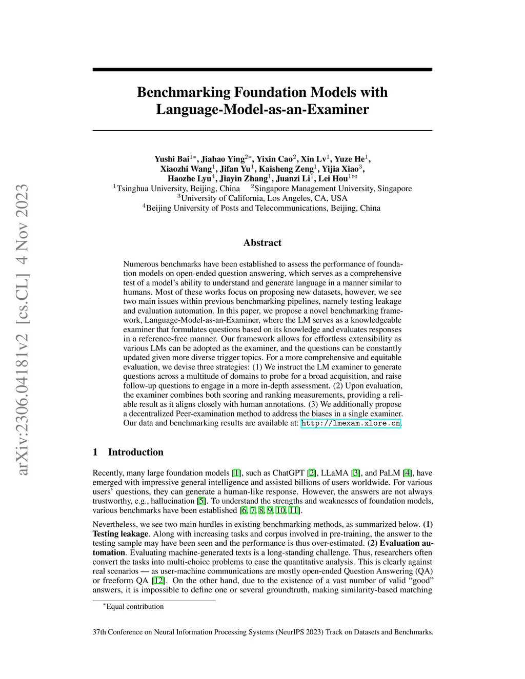 Benchmarking Foundation Models with Language-Model-as-an-Examiner
