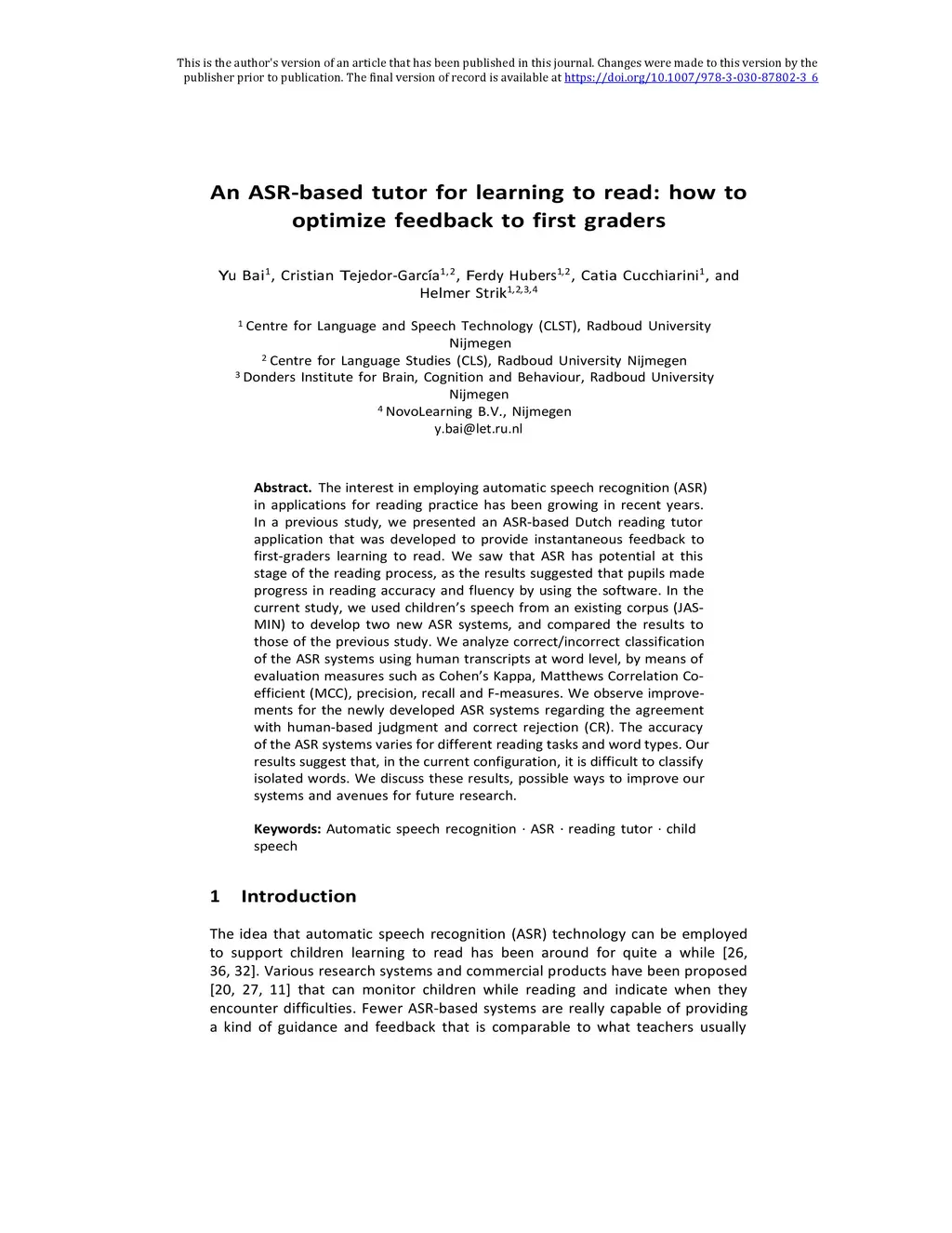 An ASR-Based Tutor for Learning to Read: How to Optimize Feedback to
