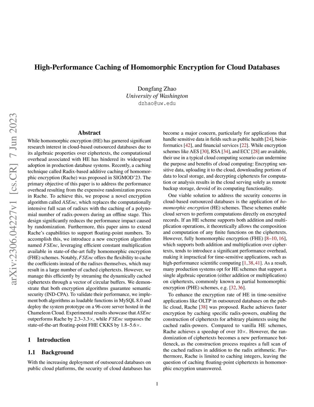 High-Performance Caching of Homomorphic Encryption for Cloud Databases