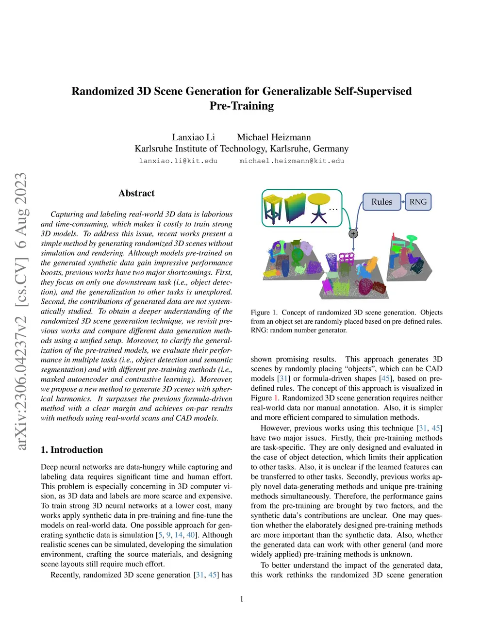 Capturing and labeling real-world 3D data is laborious and time-consuming, which makes it costly to train strong 3D models. To address this issue, recent works present a simple method by generating randomized 3D scenes without simulation and rendering. Although models pre-trained on the generated synthetic data gain impressive performance boosts, previous works have two major shortcomings. First, they focus on only one downstream task (i.e., object detection), and the generalization to other tasks is unexplored. Second, the contributions of generated data are not systematically studied. To obtain a deeper understanding of the randomized 3D scene generation technique, we revisit previous works and compare different data generation methods using a unified setup. Moreover, to clarify the generalization of the pre-trained models, we evaluate their performance in multiple tasks (i.e., object detection and semantic segmentation) and with different pre-training methods (i.e., masked autoencoder and contrastive learning). Moreover, we propose a new method to generate 3D scenes with spherical harmonics. It surpasses the previous formula-driven method with a clear margin and achieves on-par results with methods using real-world scans and CAD models.
