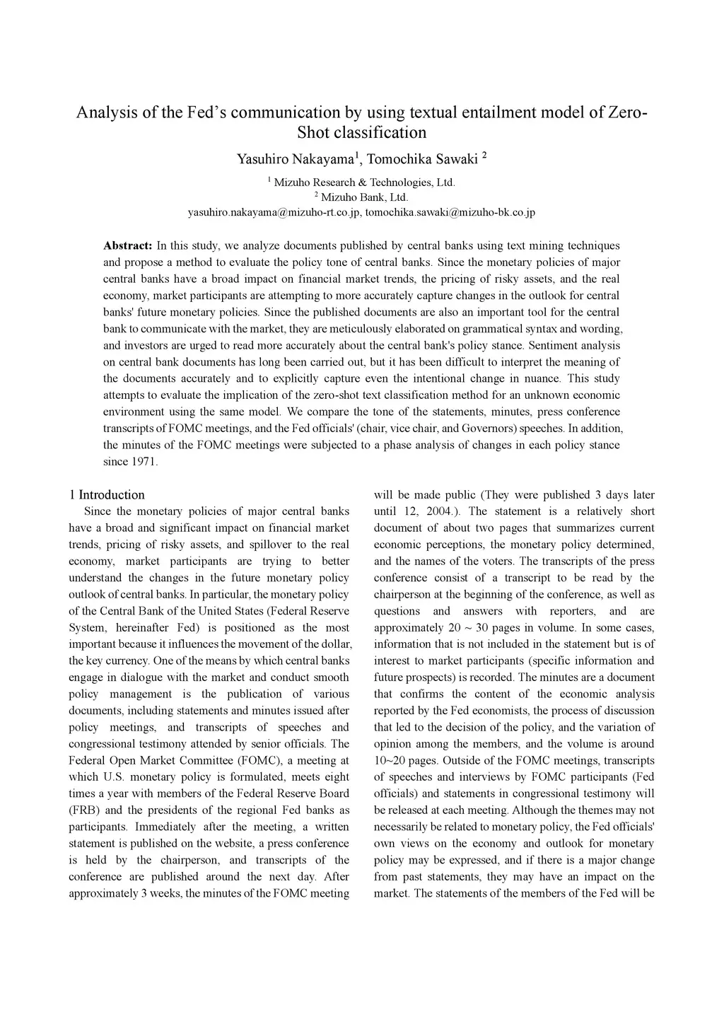 In this study, we analyze documents published by central banks using text mining techniques and propose a method to evaluate the policy tone of central banks. Since the monetary policies of major central banks have a broad impact on financial market trends, the pricing of risky assets, and the real economy, market participants are attempting to more accurately capture changes in the outlook for central banks' future monetary policies. Since the published documents are also an important tool for the central bank to communicate with the market, they are meticulously elaborated on grammatical syntax and wording, and investors are urged to read more accurately about the central bank's policy stance. Sentiment analysis on central bank documents has long been carried out, but it has been difficult to interpret the meaning of the documents accurately and to explicitly capture even the intentional change in nuance. This study attempts to evaluate the implication of the zero-shot text classification method for an unknown economic environment using the same model. We compare the tone of the statements, minutes, press conference transcripts of FOMC meetings, and the Fed officials' (chair, vice chair, and Governors) speeches. In addition, the minutes of the FOMC meetings were subjected to a phase analysis of changes in each policy stance since 1971.