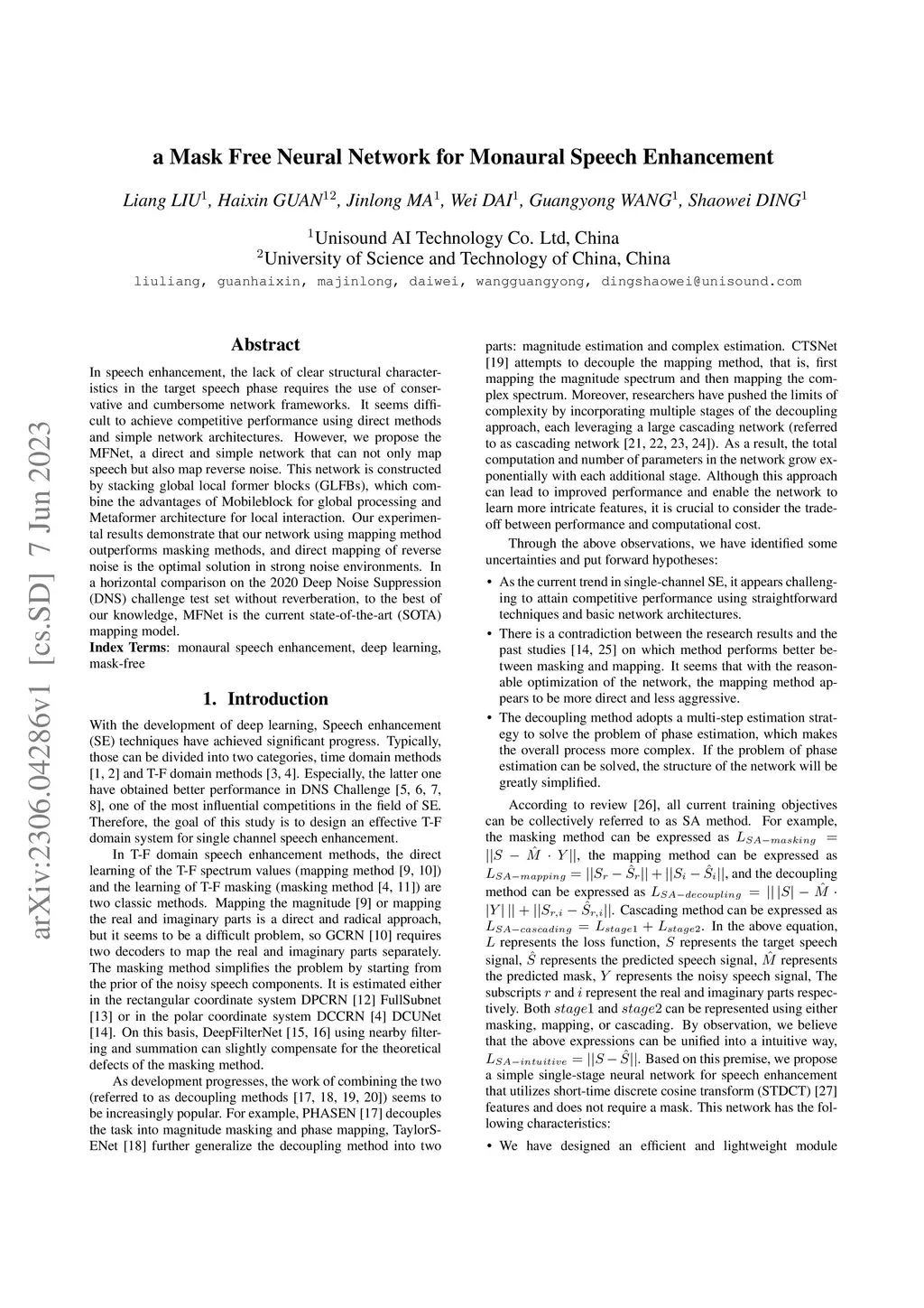 A Mask Free Neural Network for Monaural Speech Enhancement