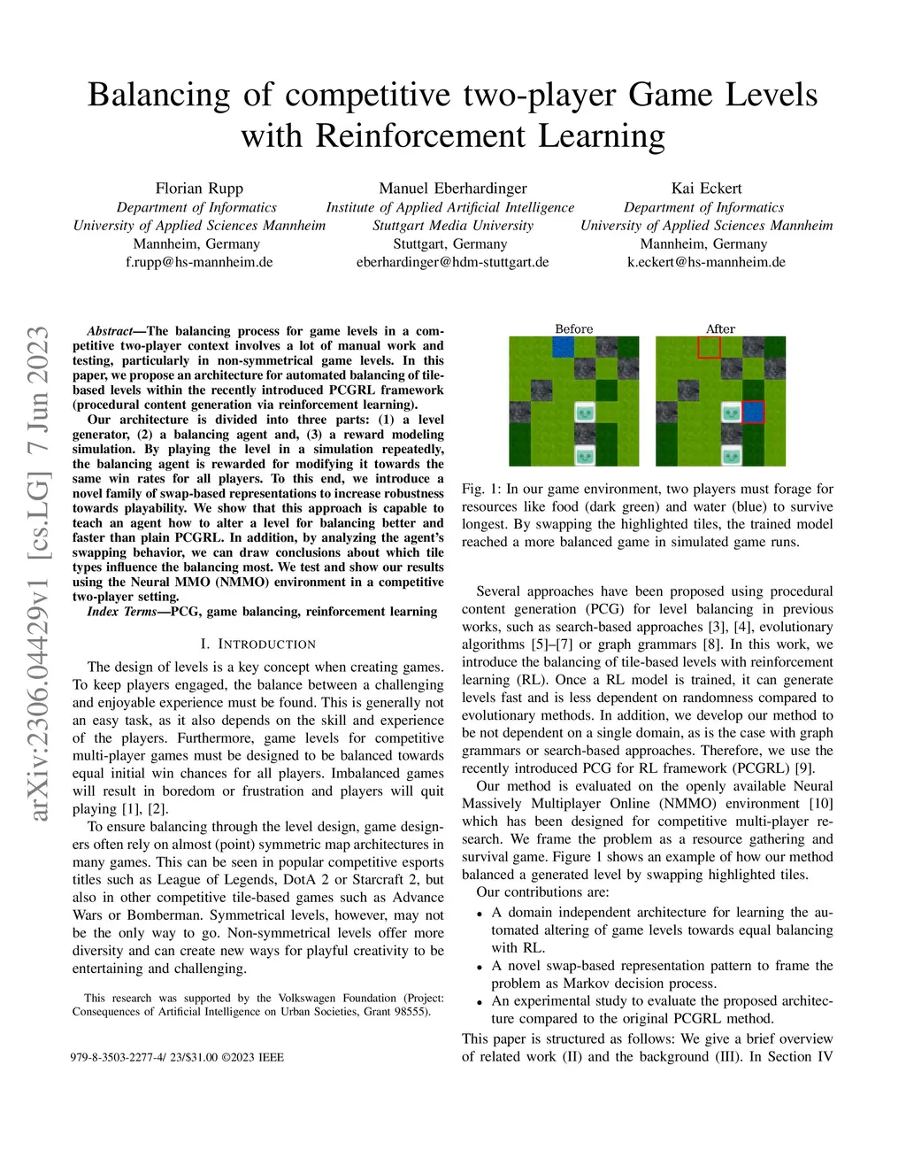 Balancing of competitive two-player Game Levels with Reinforcement