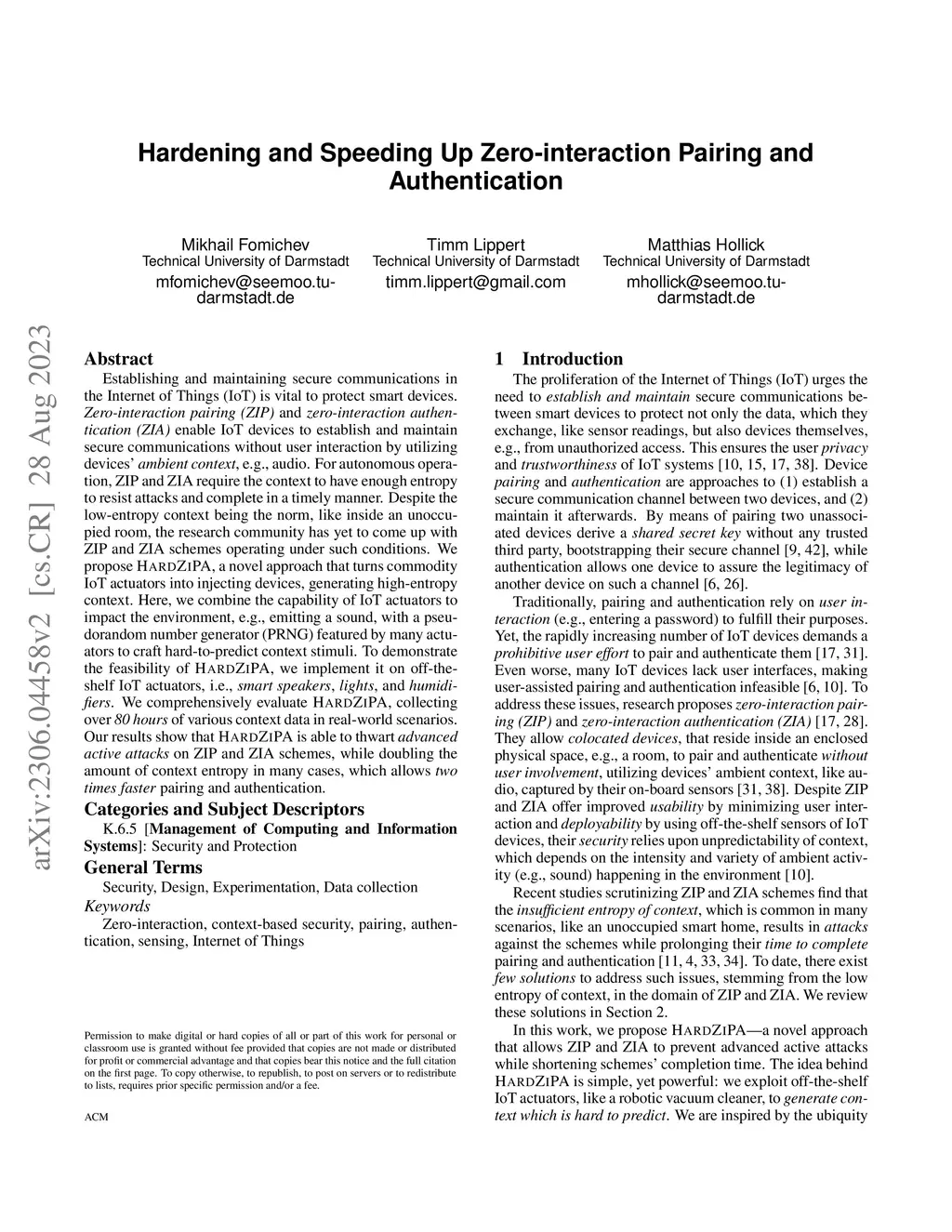 Establishing and maintaining secure communications in the Internet of Things (IoT) is vital to protect smart devices. Zero-interaction pairing (ZIP) and zero-interaction authentication (ZIA) enable IoT devices to establish and maintain secure communications without user interaction by utilizing devices' ambient context, e.g., audio. For autonomous operation, ZIP and ZIA require the context to have enough entropy to resist attacks and complete in a timely manner. Despite the low-entropy context being the norm, like inside an unoccupied room, the research community has yet to come up with ZIP and ZIA schemes operating under such conditions. We propose HardZiPA, a novel approach that turns commodity IoT actuators into injecting devices, generating high-entropy context. Here, we combine the capability of IoT actuators to impact the environment, e.g., emitting a sound, with a pseudorandom number generator (PRNG) featured by many actuators to craft hard-to-predict context stimuli. To demonstrate the feasibility of HardZiPA, we implement it on off-the-shelf IoT actuators, i.e., smart speakers, lights, and humidifiers. We comprehensively evaluate HardZiPA, collecting over 80 hours of various context data in real-world scenarios. Our results show that HardZiPA is able to thwart advanced active attacks on ZIP and ZIA schemes, while doubling the amount of context entropy in many cases, which allows two times faster pairing and authentication.