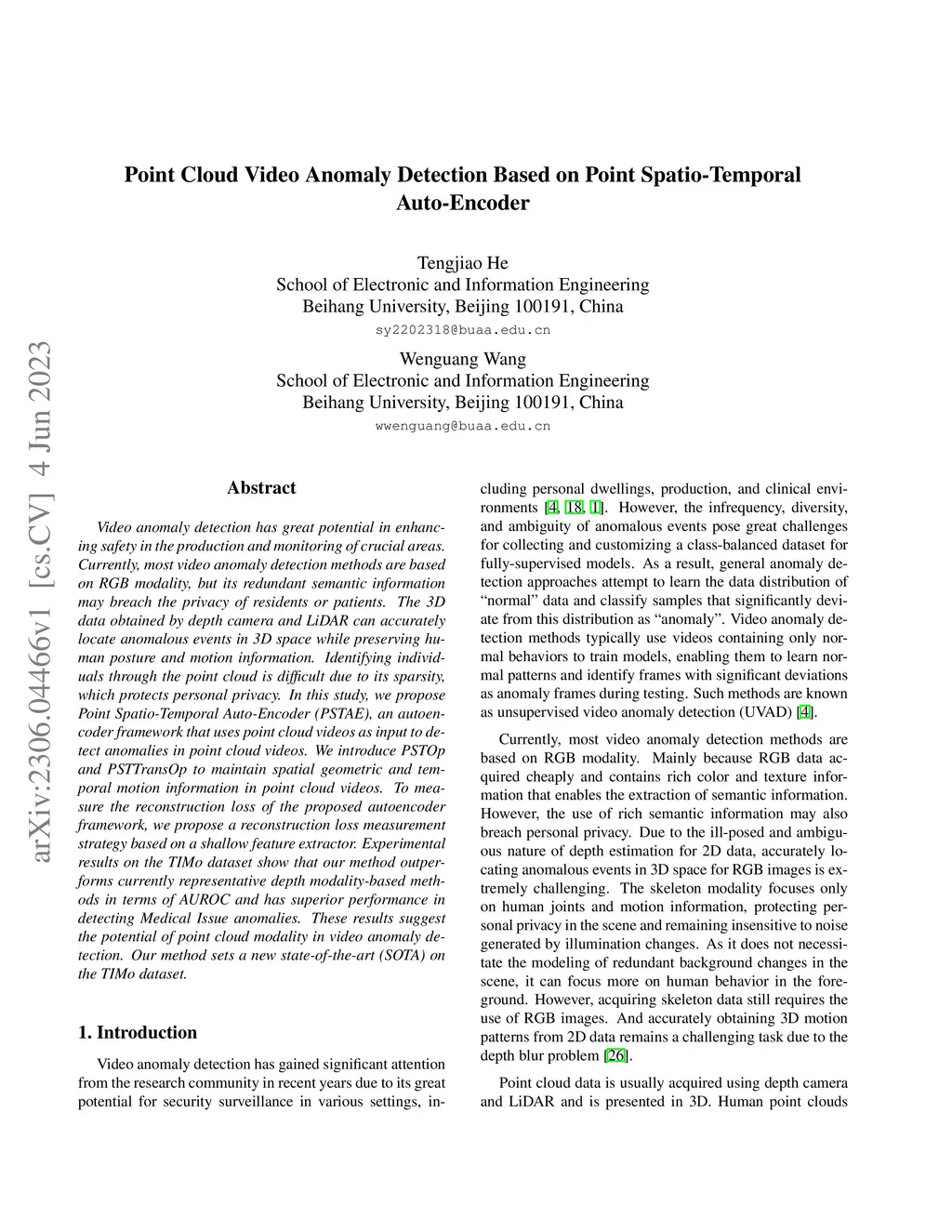 Point Cloud Video Anomaly Detection Based on Point Spatio-Temporal
