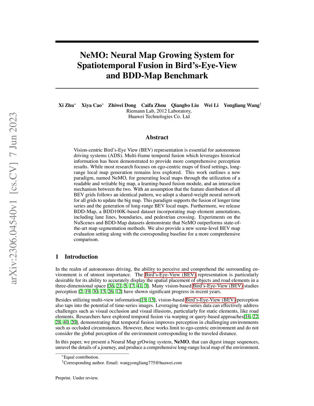 Vision-centric Bird's-Eye View (BEV) representation is essential for autonomous driving systems (ADS). Multi-frame temporal fusion which leverages historical information has been demonstrated to provide more comprehensive perception results. While most research focuses on ego-centric maps of fixed settings, long-range local map generation remains less explored. This work outlines a new paradigm, named NeMO, for generating local maps through the utilization of a readable and writable big map, a learning-based fusion module, and an interaction mechanism between the two. With an assumption that the feature distribution of all BEV grids follows an identical pattern, we adopt a shared-weight neural network for all grids to update the big map. This paradigm supports the fusion of longer time series and the generation of long-range BEV local maps. Furthermore, we release BDD-Map, a BDD100K-based dataset incorporating map element annotations, including lane lines, boundaries, and pedestrian crossing. Experiments on the NuScenes and BDD-Map datasets demonstrate that NeMO outperforms state-of-the-art map segmentation methods. We also provide a new scene-level BEV map evaluation setting along with the corresponding baseline for a more comprehensive comparison.