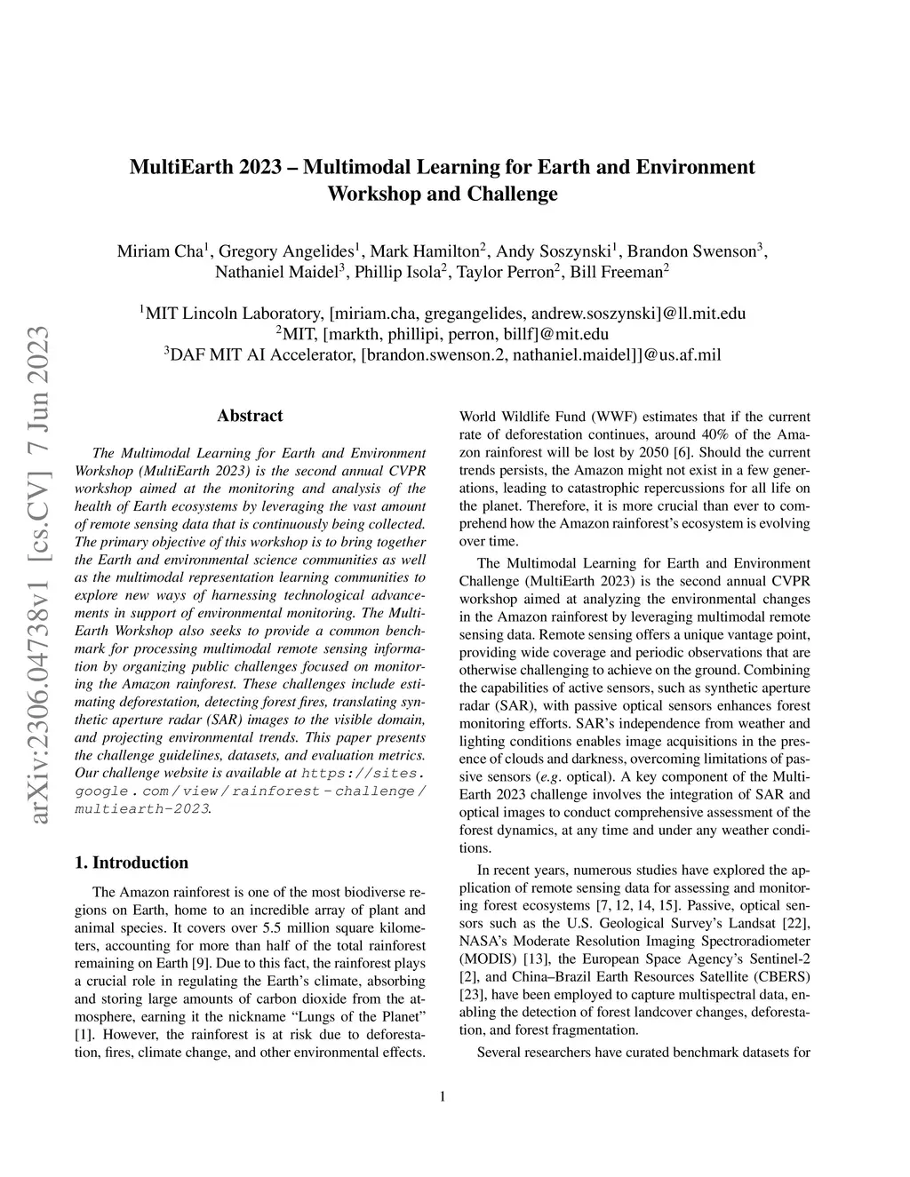 MultiEarth 2023 -- Multimodal Learning for Earth and Environment