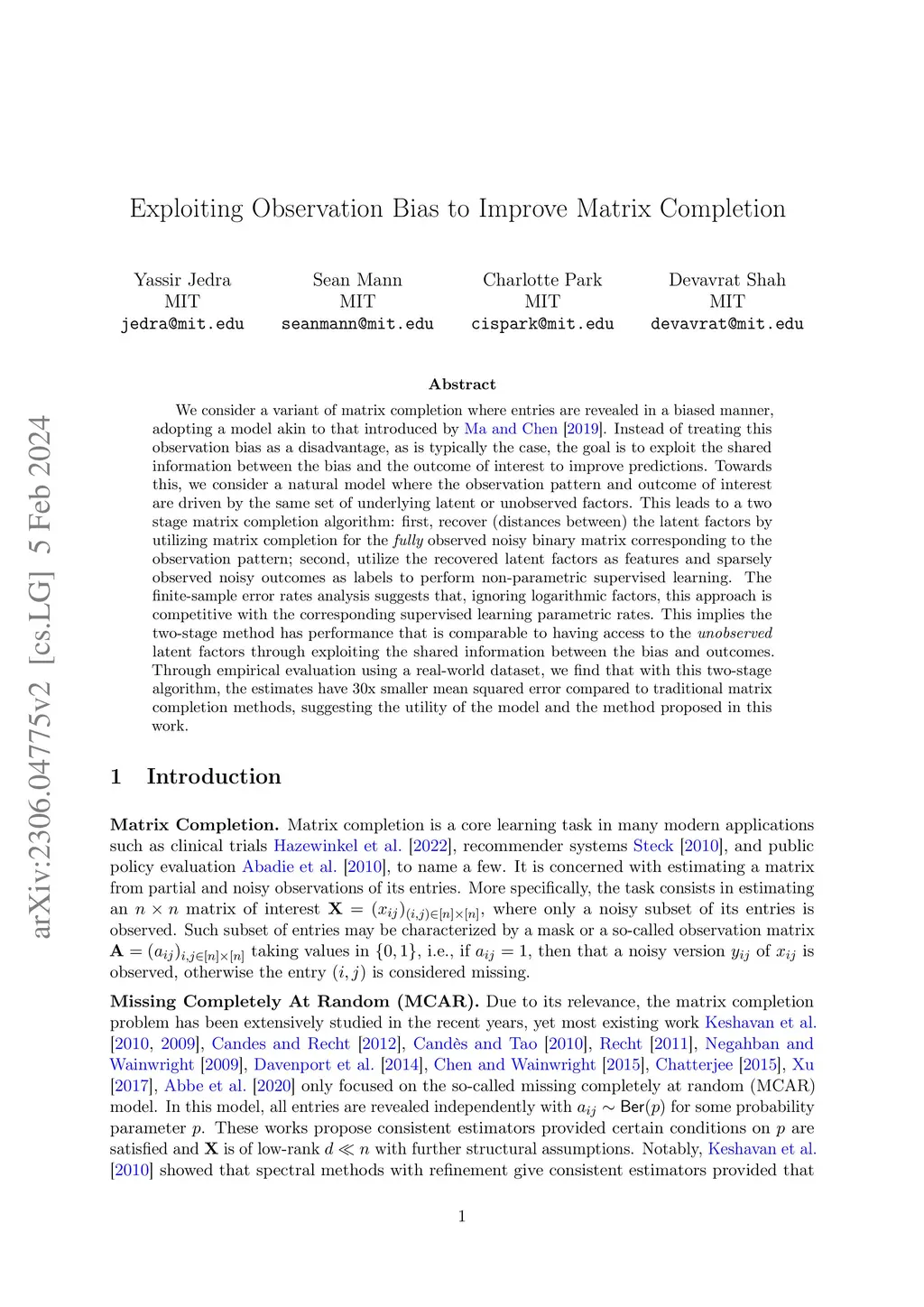 We consider a variant of matrix completion where entries are revealed in a biased manner. We wish to understand the extent to which such bias can be exploited in improving predictions. Towards that, we propose a natural model where the observation pattern and outcome of interest are driven by the same set of underlying latent (or unobserved) factors. We devise Mask Nearest Neighbor (MNN), a novel two-stage matrix completion algorithm: first, it recovers (distances between) the latent factors by utilizing matrix estimation for the fully observed noisy binary matrix, corresponding to the observation pattern; second, it utilizes the recovered latent factors as features and sparsely observed noisy outcomes as labels to perform non-parametric supervised learning. Our analysis reveals that MNN enjoys entry-wise finite-sample error rates that are competitive with corresponding supervised learning parametric rates. Despite not having access to the latent factors and dealing with biased observations, MNN exhibits such competitive performance via only exploiting the shared information between the bias and outcomes. Finally, through empirical evaluation using a real-world dataset, we find that with MNN, the estimates have 28x smaller mean squared error compared to traditional matrix completion methods, suggesting the utility of the model and method proposed in this work.