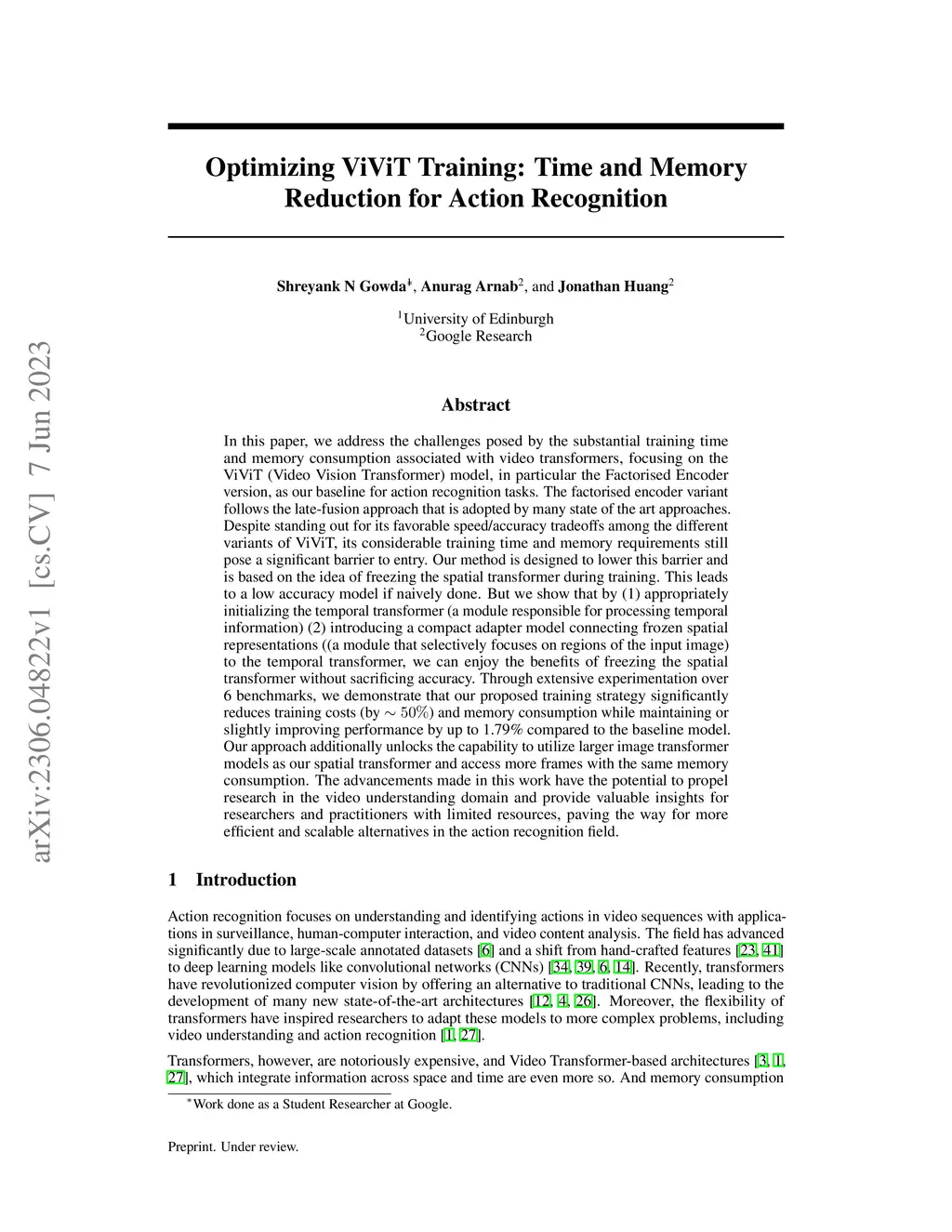 Optimizing ViViT Training: Time and Memory Reduction for Action