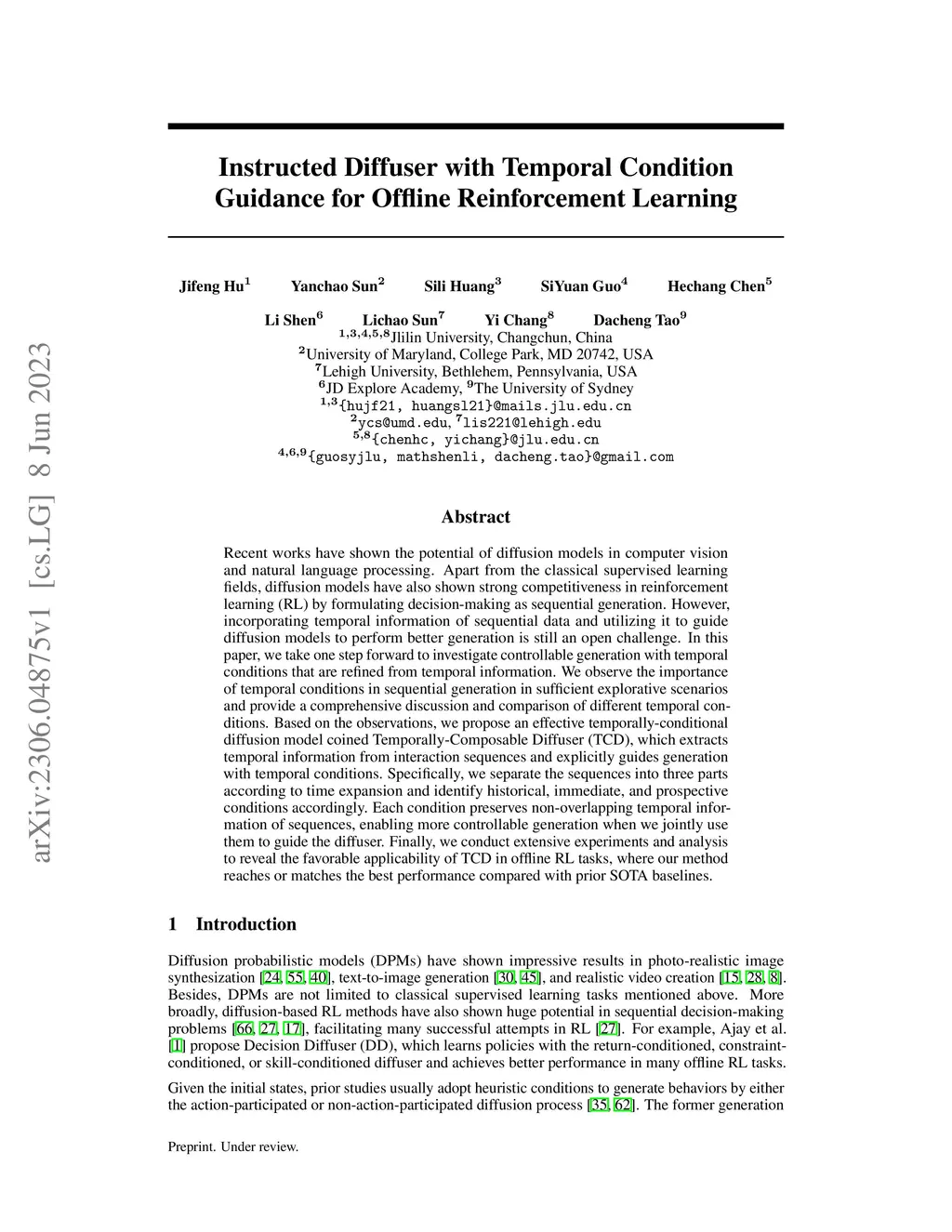 Instructed Diffuser with Temporal Condition Guidance for Offline