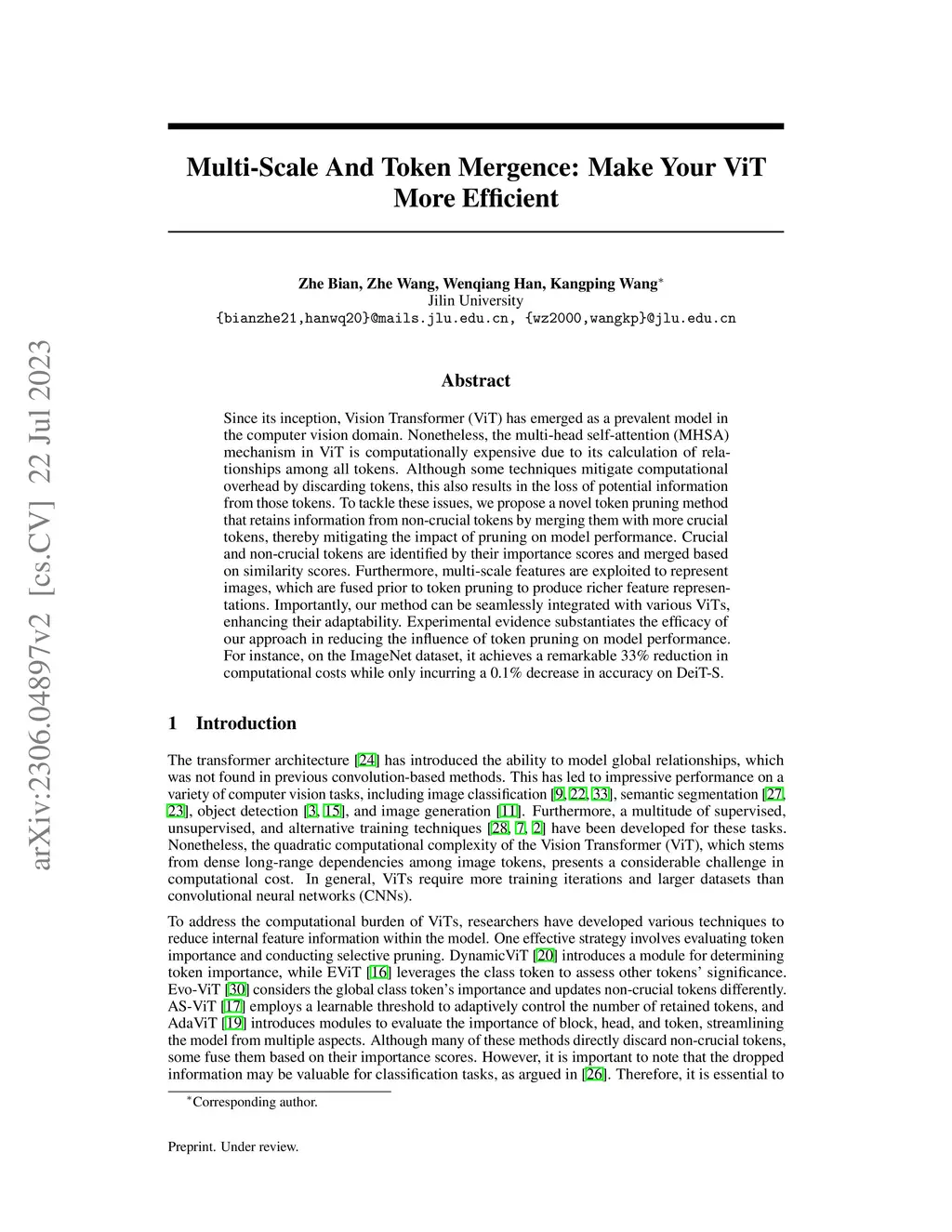 Multi-Scale And Token Mergence: Make Your ViT More Efficient