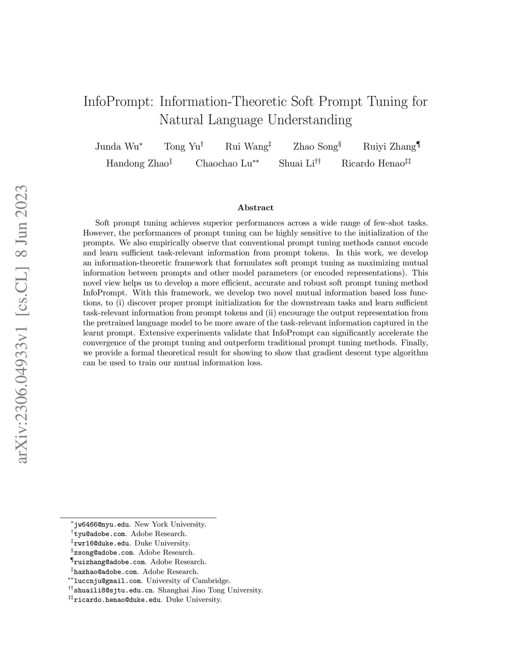 InfoPrompt: Information-Theoretic Soft Prompt Tuning for Natural