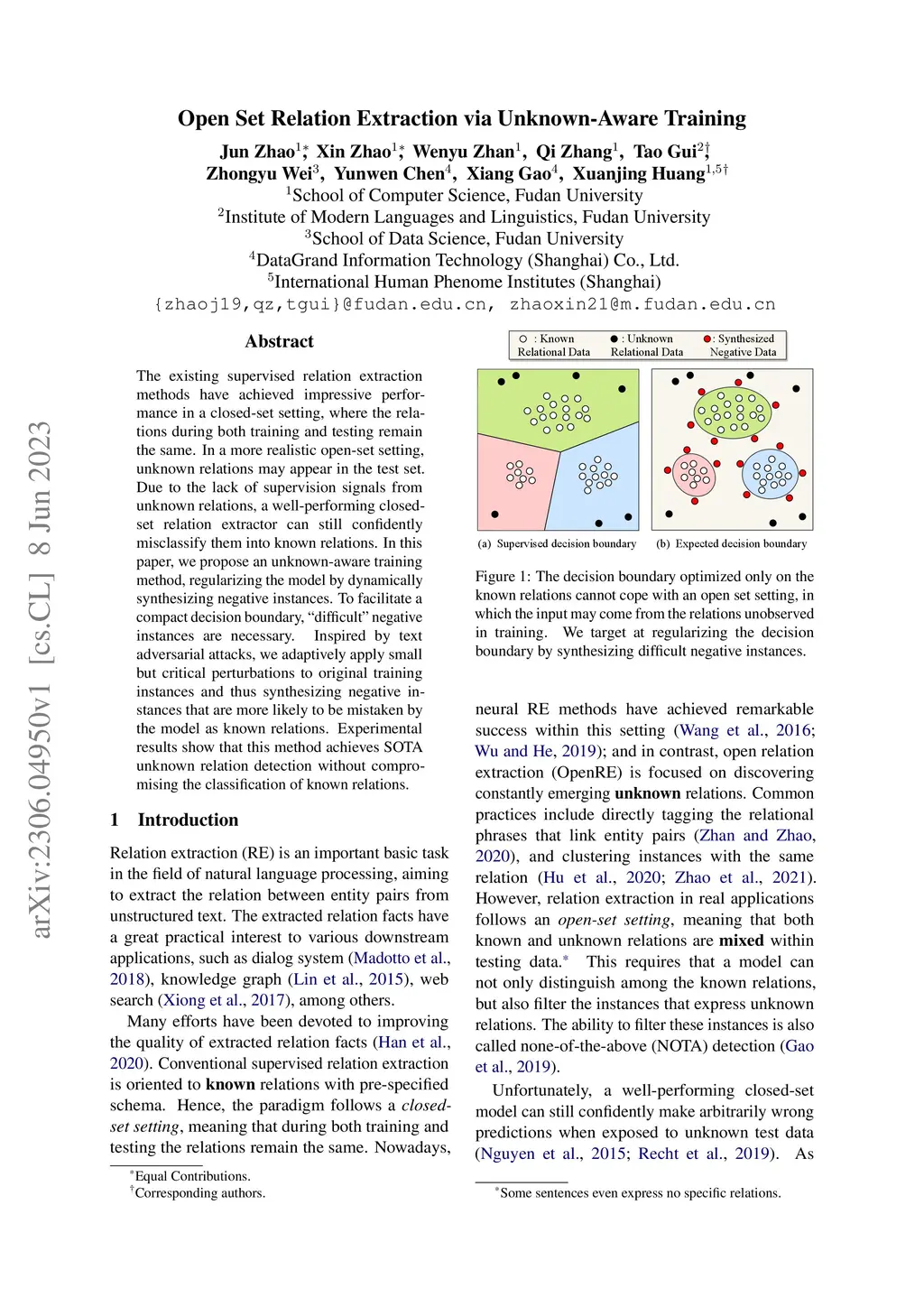 Open Set Relation Extraction via Unknown-Aware Training