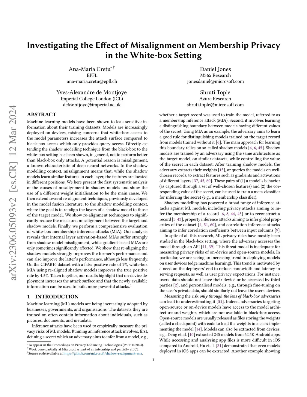 Machine learning models have been shown to leak sensitive information about their training datasets. Models are increasingly deployed on devices, raising concerns that white-box access to the model parameters increases the attack surface compared to black-box access which only provides query access. Directly extending the shadow modelling technique from the black-box to the white-box setting has been shown, in general, not to perform better than black-box only attacks. A potential reason is misalignment, a known characteristic of deep neural networks. In the shadow modelling context, misalignment means that, while the shadow models learn similar features in each layer, the features are located in different positions. We here present the first systematic analysis of the causes of misalignment in shadow models and show the use of a different weight initialisation to be the main cause. We then extend several re-alignment techniques, previously developed in the model fusion literature, to the shadow modelling context, where the goal is to re-align the layers of a shadow model to those of the target model. We show re-alignment techniques to significantly reduce the measured misalignment between the target and shadow models. Finally, we perform a comprehensive evaluation of white-box membership inference attacks (MIA). Our analysis reveals that internal layer activation-based MIAs suffer strongly from shadow model misalignment, while gradient-based MIAs are only sometimes significantly affected. We show that re-aligning the shadow models strongly improves the former's performance and can also improve the latter's performance, although less frequently. Taken together, our results highlight that on-device deployment increases the attack surface and that the newly available information can be used to build more powerful attacks.
