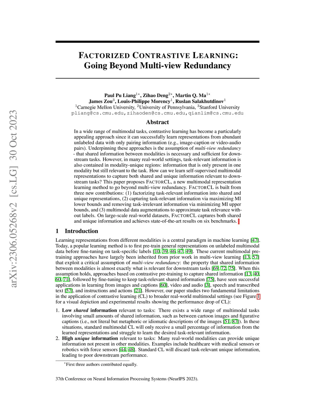 Factorized Contrastive Learning: Going Beyond Multi-view Redundancy