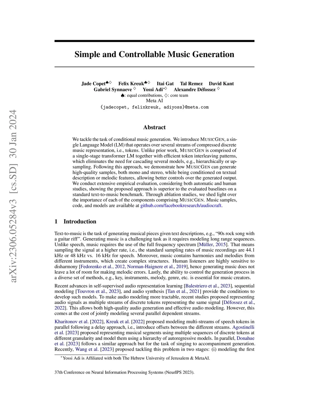 Simple and Controllable Music Generation