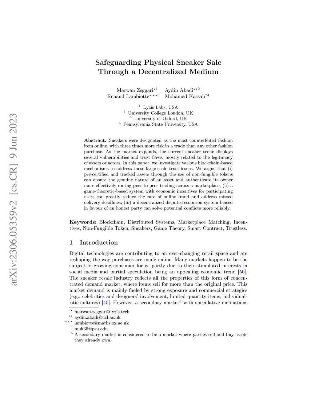 Safeguarding Physical Sneaker Sale Through a Decentralized Medium